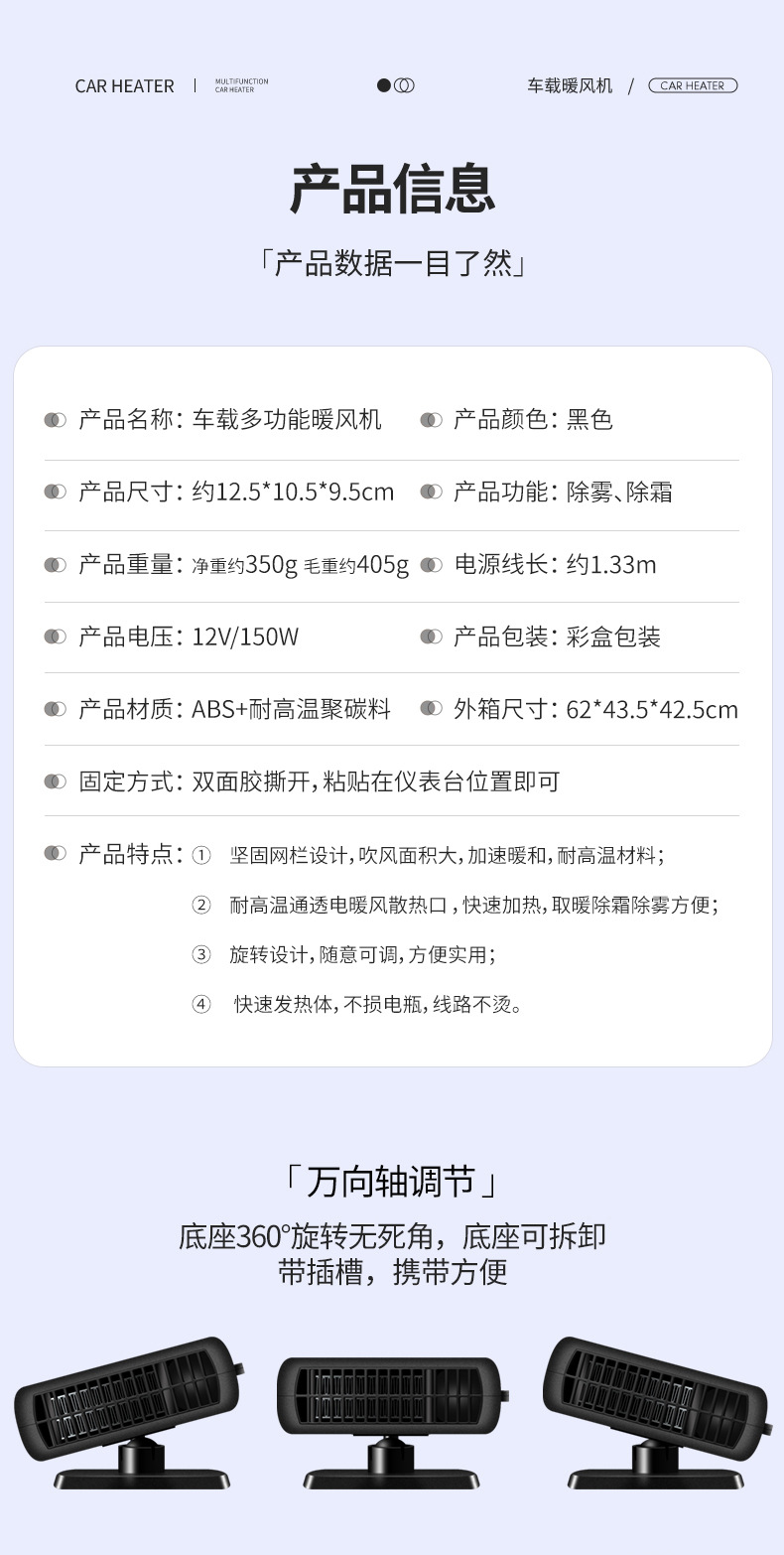 备注:本款产品是小功率产品,解决限流问题,主要是用来除霜去雾,取暖效果达不到,介意者慎拍。还有什么问题联系客服询问。