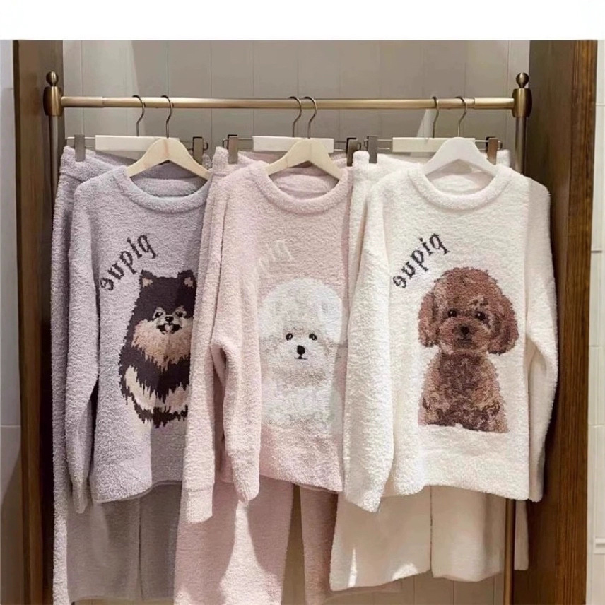 가을과 겨울 일본 부드러운 귀여운 강아지 곰 따뜻한 잠옷 반 벨벳 세트 성인 홈 옷