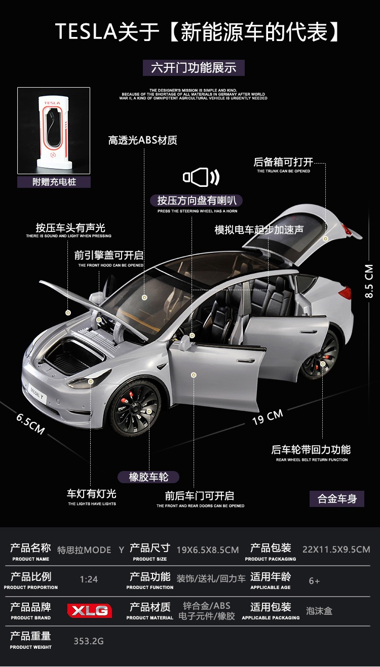 XLG1:24 테슬라 모델 Y 합금 자동차 모형 시뮬레이션 세단 장식품 어린이 장난감 선물 남성용 도매스토어 가기