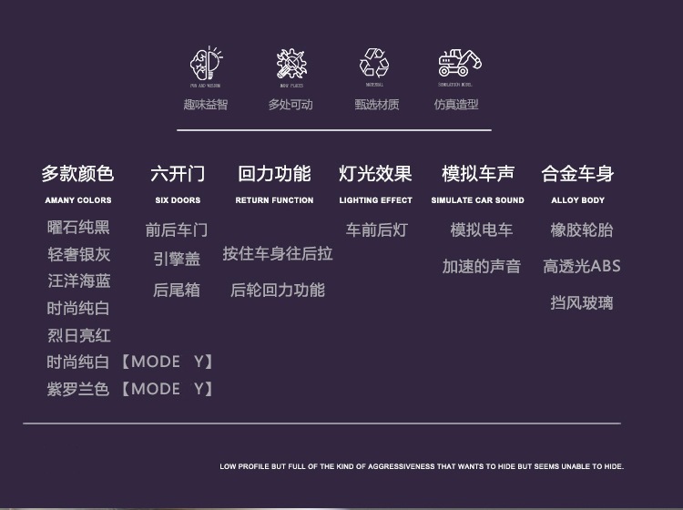 【使用方法】取下车底部绝缘片,轻按压车头,即有声光,按住车身往回拉,再松手车子即向跑