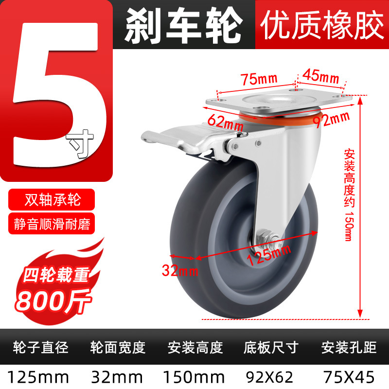 • 고무 5인치 범용 브레이크 휠(저소음 업그레이드)
