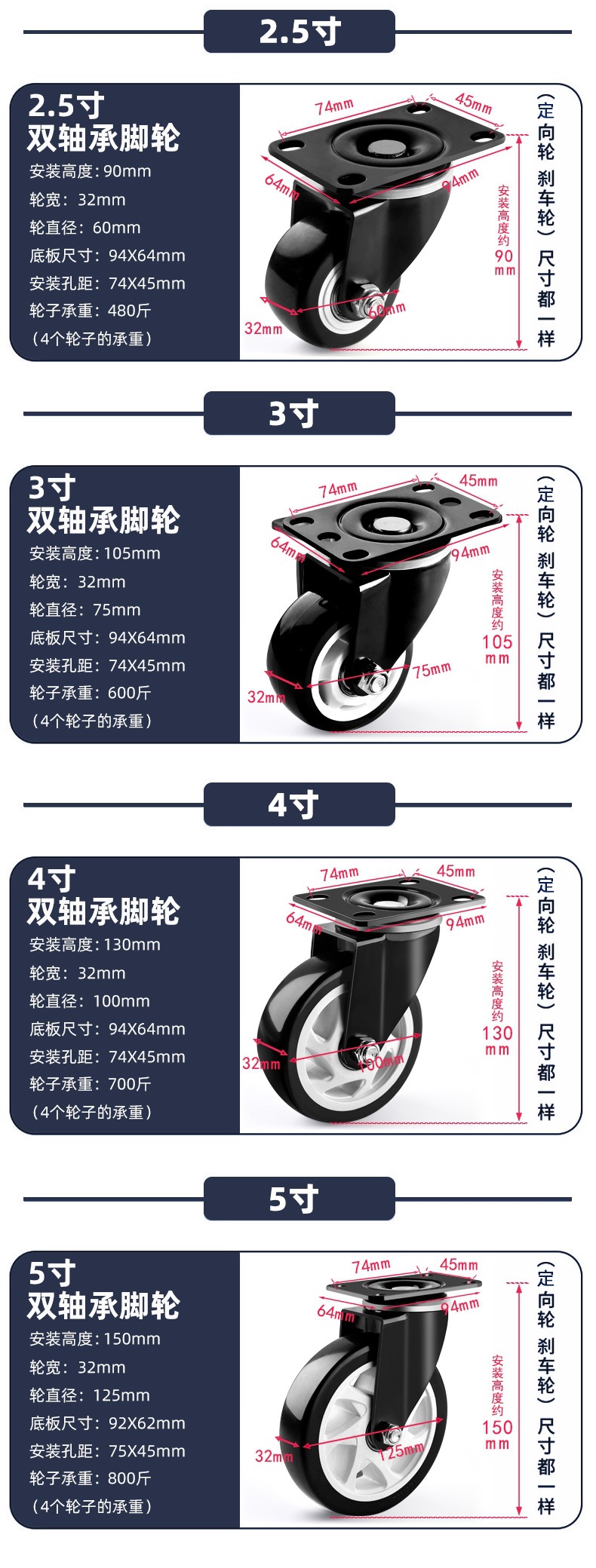 • 고무 1.5인치 범용 브레이크 휠(저소음 업그레이드)