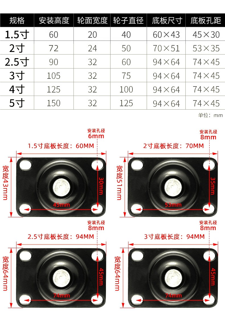 • 고무 3인치 범용 휠(나사 포함)(무음 업그레이드)