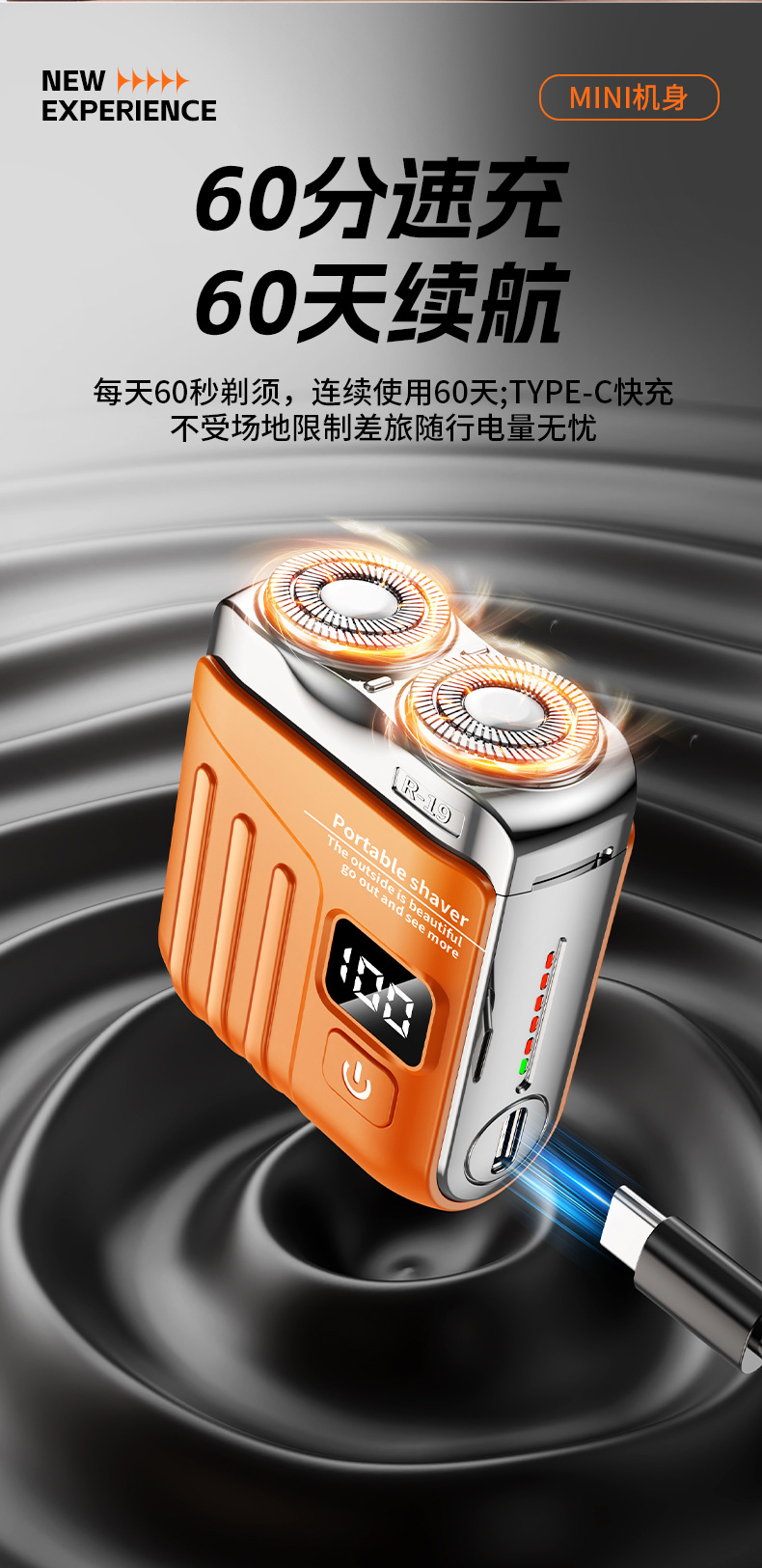국경 간 새로운 전기 면도기 미니 휴대용 미니 남자 면도기 유형-c 빠른 충전 대기 면도기스토어 가기