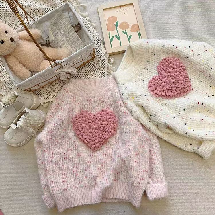 여자 스웨터 가을과 겨울 새로운 서양식 어린이 라운드 넥 한국 스타일 느슨한 올매치 니트 스웨터 러브 울 탑스토어 가기