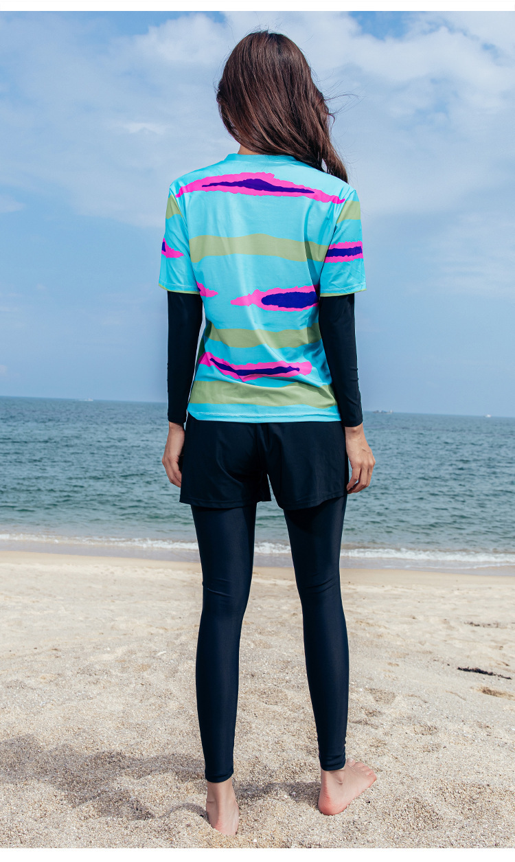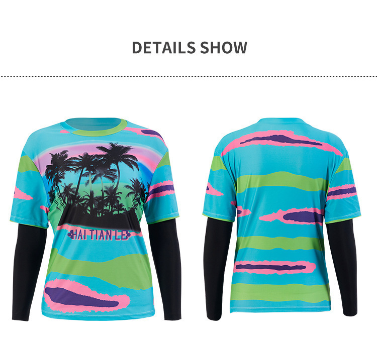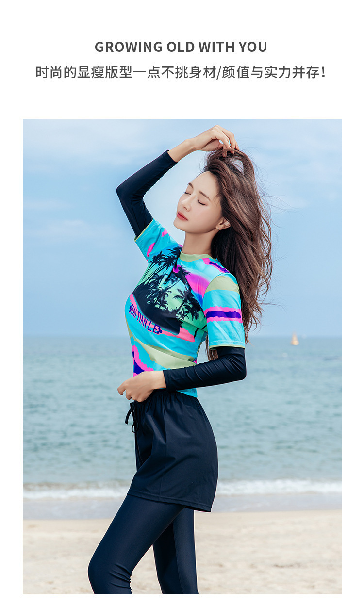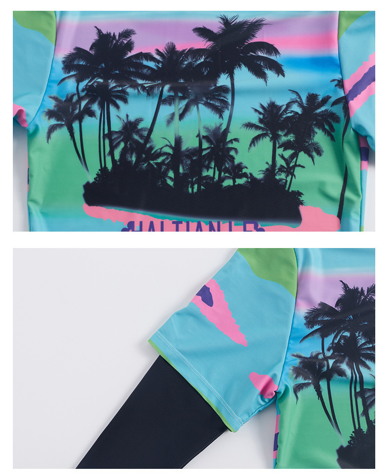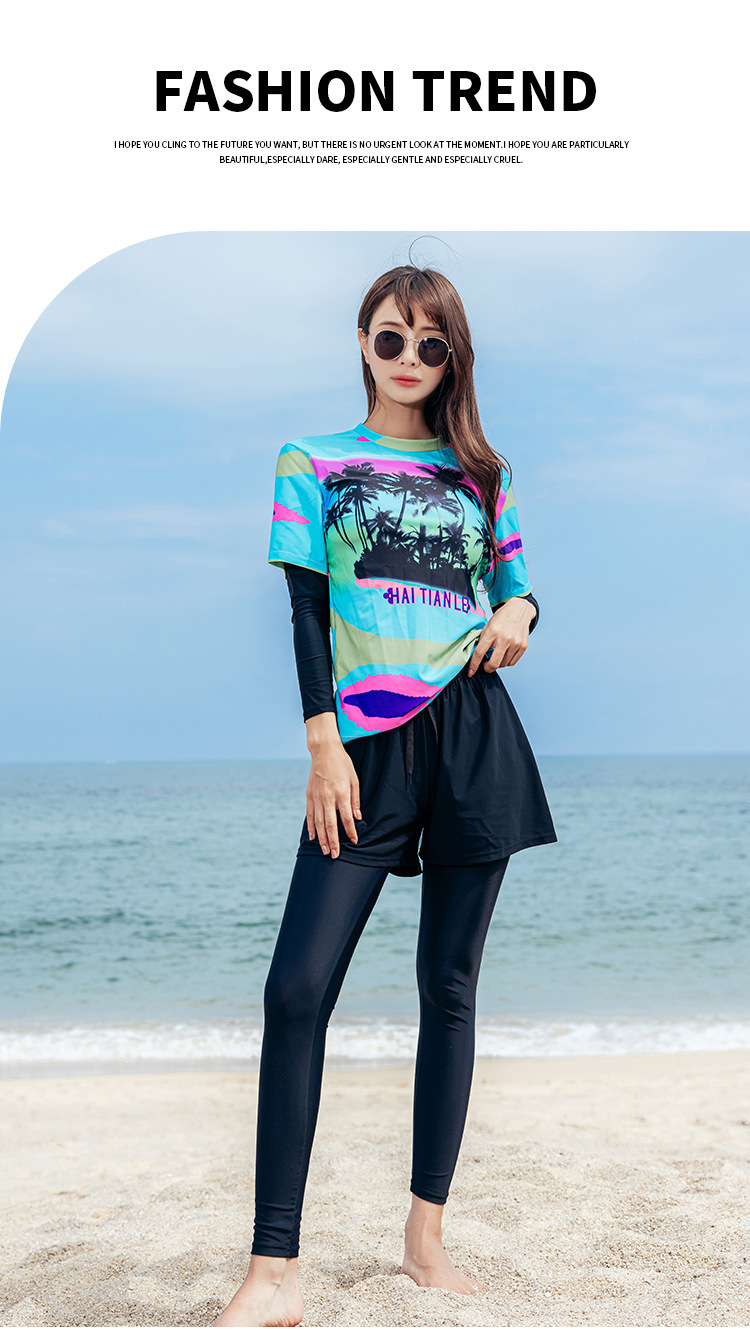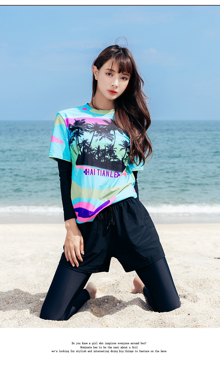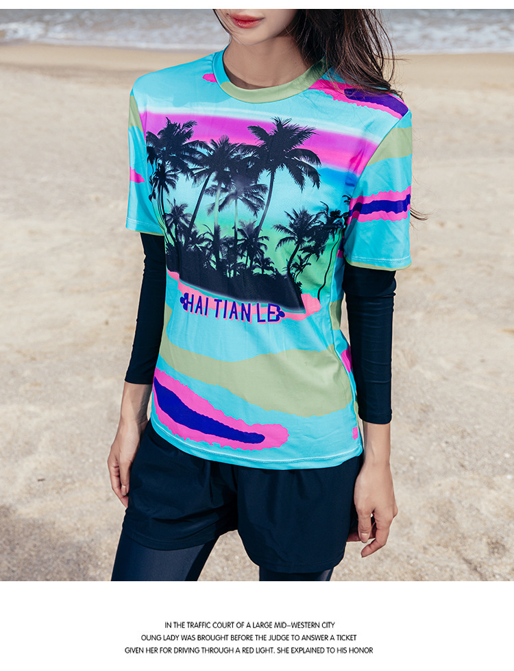 2024女款分体四件套温泉游泳女士树风景外国风格短袖设计师印花