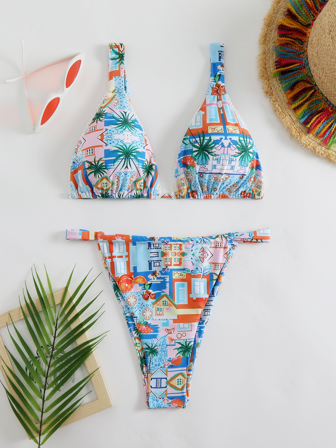 2025 국경 간 비키니 투피스 프린트 스트랩 수영복 비키니 유럽과 미국의 대외 무역 스트랩 조절 가능스토어 가기