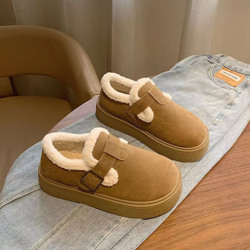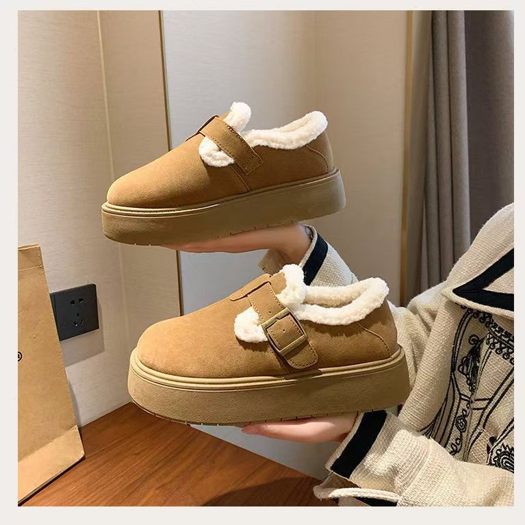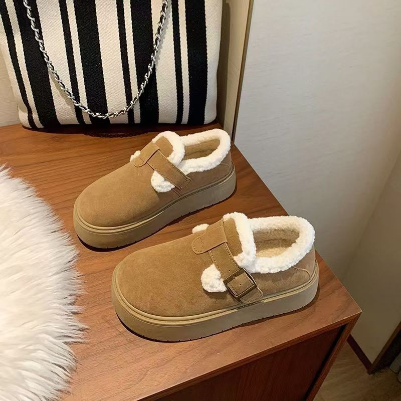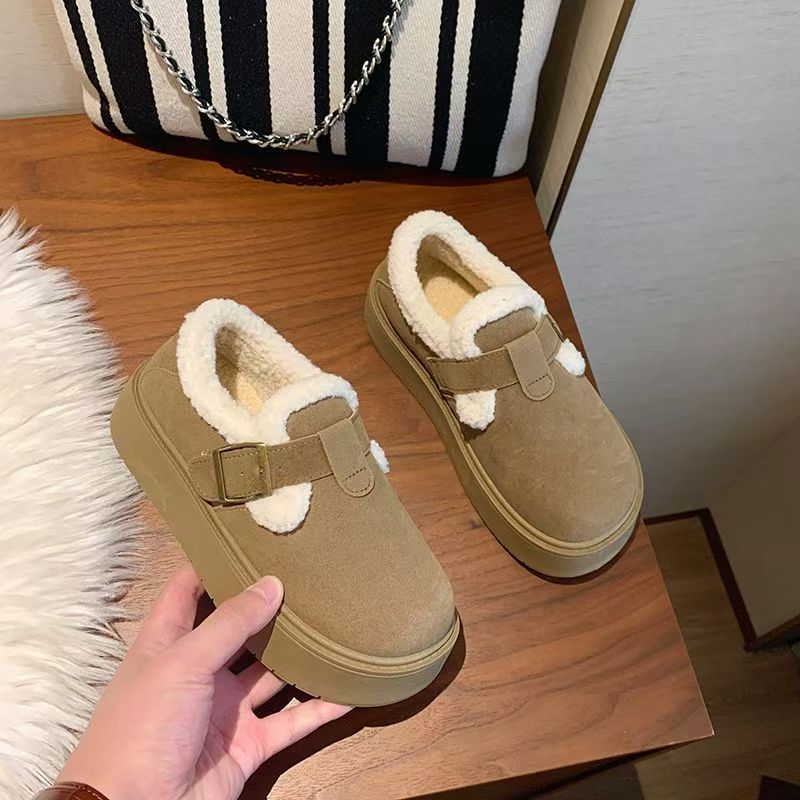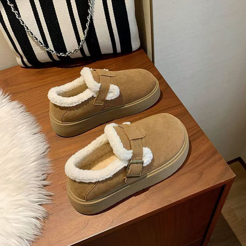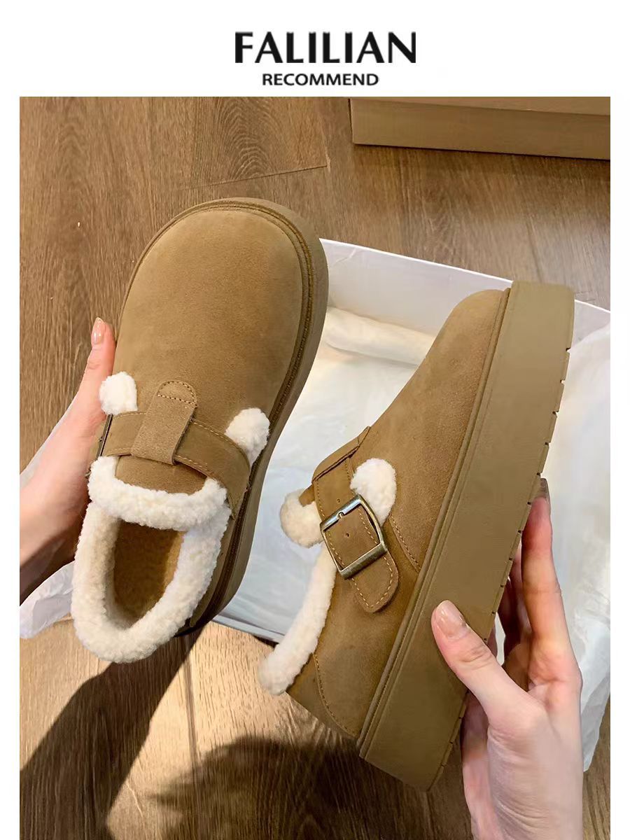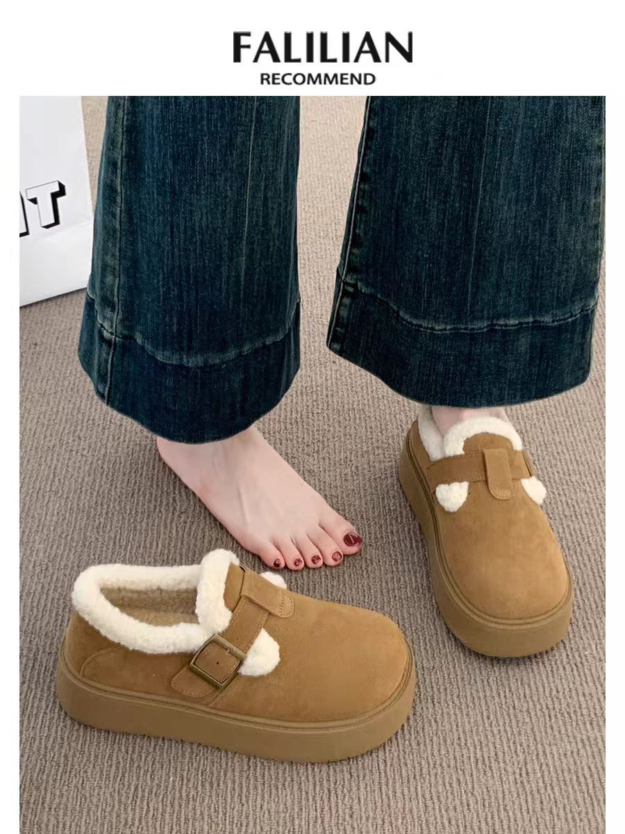두꺼운 밑창 기모 완두콩 Burken Shoes 여성의 2024 년 새로운 가을 및 겨울 로퍼 버 큰면 신발 따뜻한 스노우 부츠