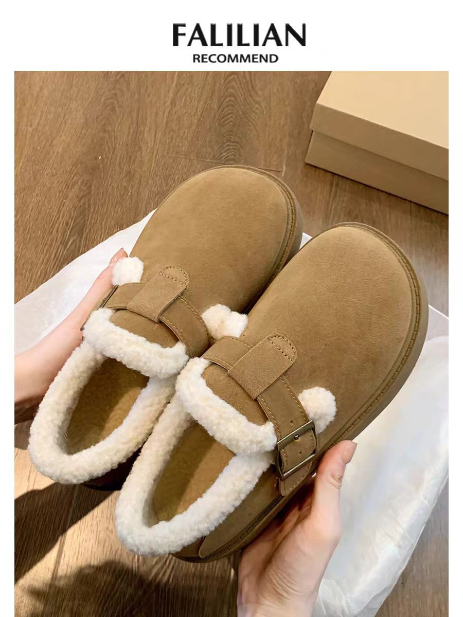 두꺼운 밑창 기모 완두콩 Burken Shoes 여성의 2024 년 새로운 가을 및 겨울 로퍼 버 큰면 신발 따뜻한 스노우 부츠스토어 가기