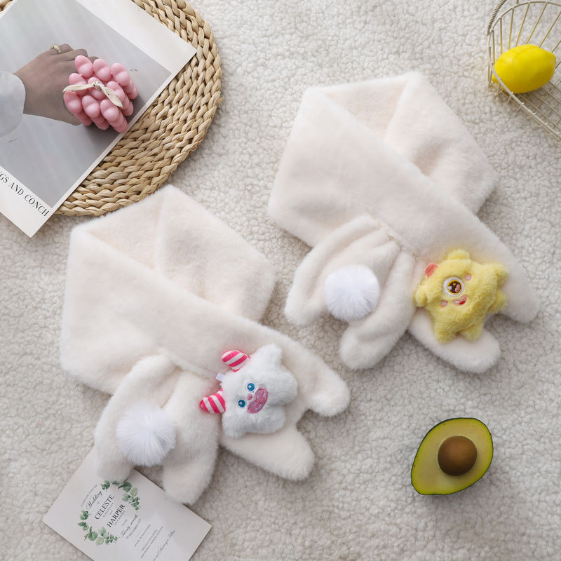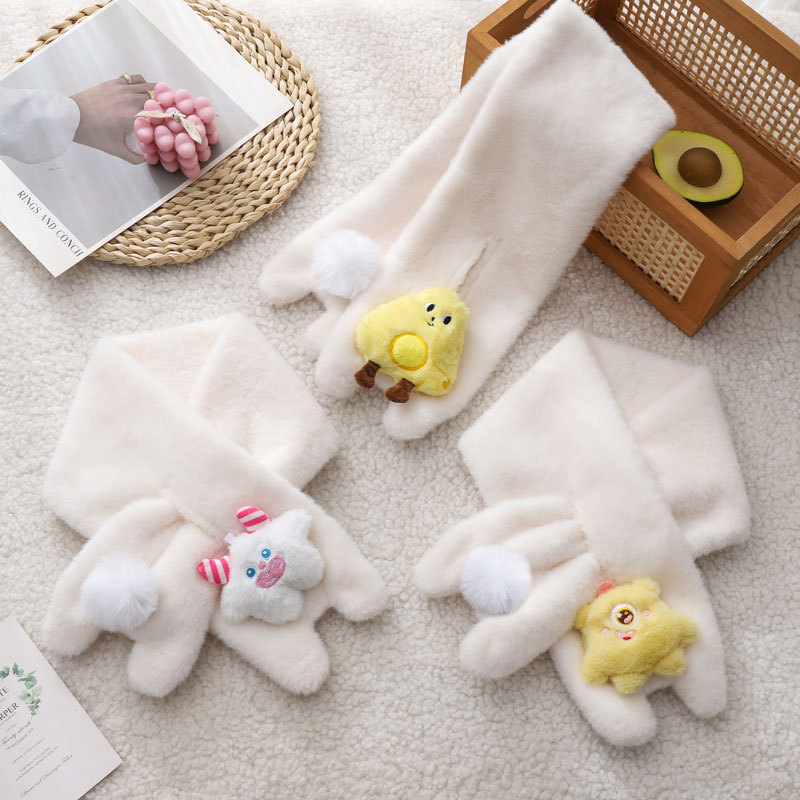 귀여운 작은 괴물 봉제 따뜻한 스카프 여성의 겨울 따뜻한 기모 두꺼운 교수형 목 감기 방지 목 보호 스카프