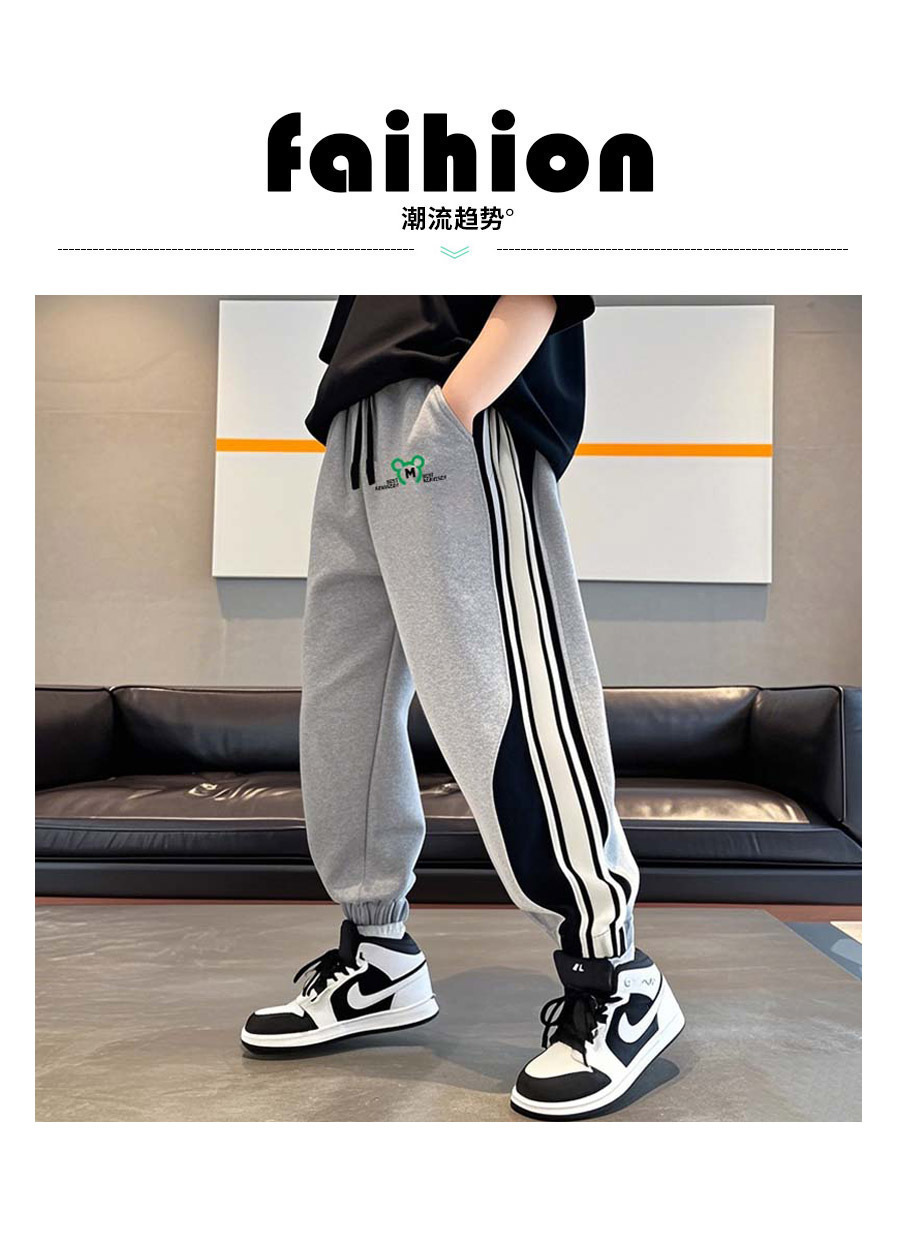 올 매치 편안한 소년 바지 가을 겨울 2024 새로운 어린이 따뜻한 스포츠 바지 대형 어린이 기모 두꺼운 운동복