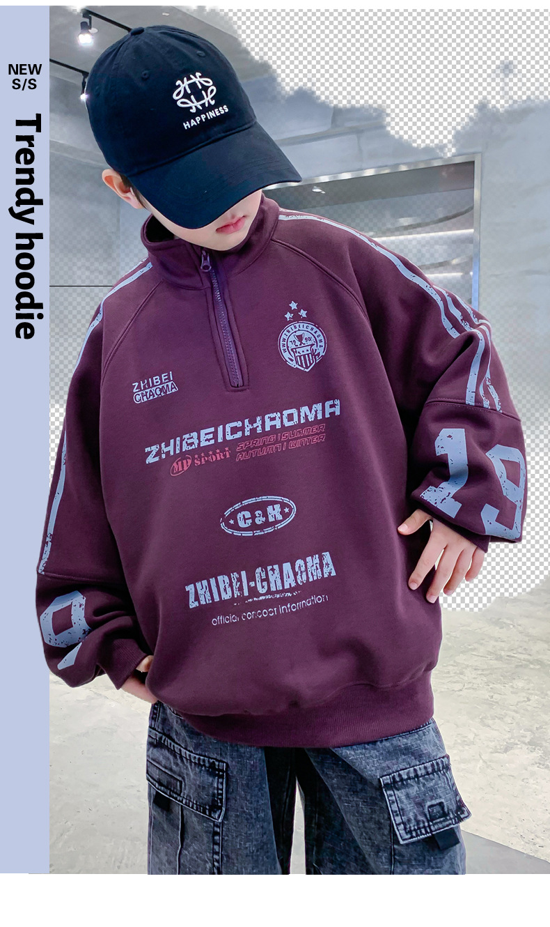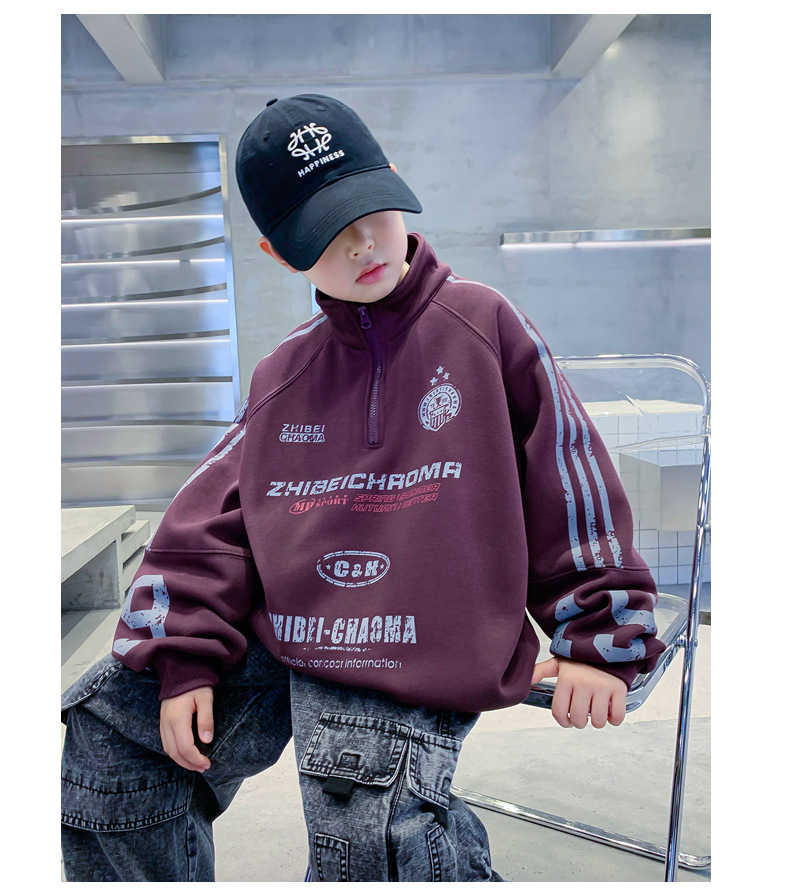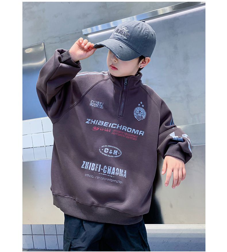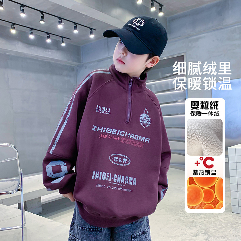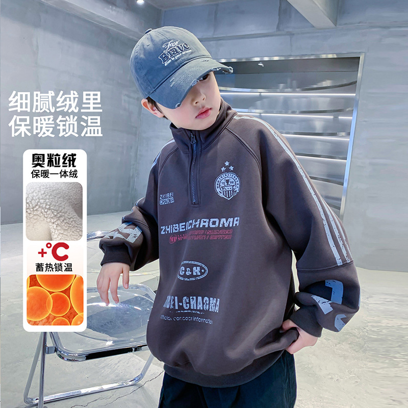 소년의 높은 칼라 기모 스웨터 2024 새로운 어린이 가을과 겨울 원피스 벨벳 큰 어린이 소년베이스 셔츠가 두껍게스토어 가기