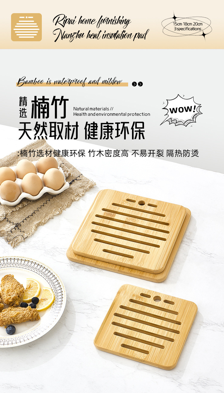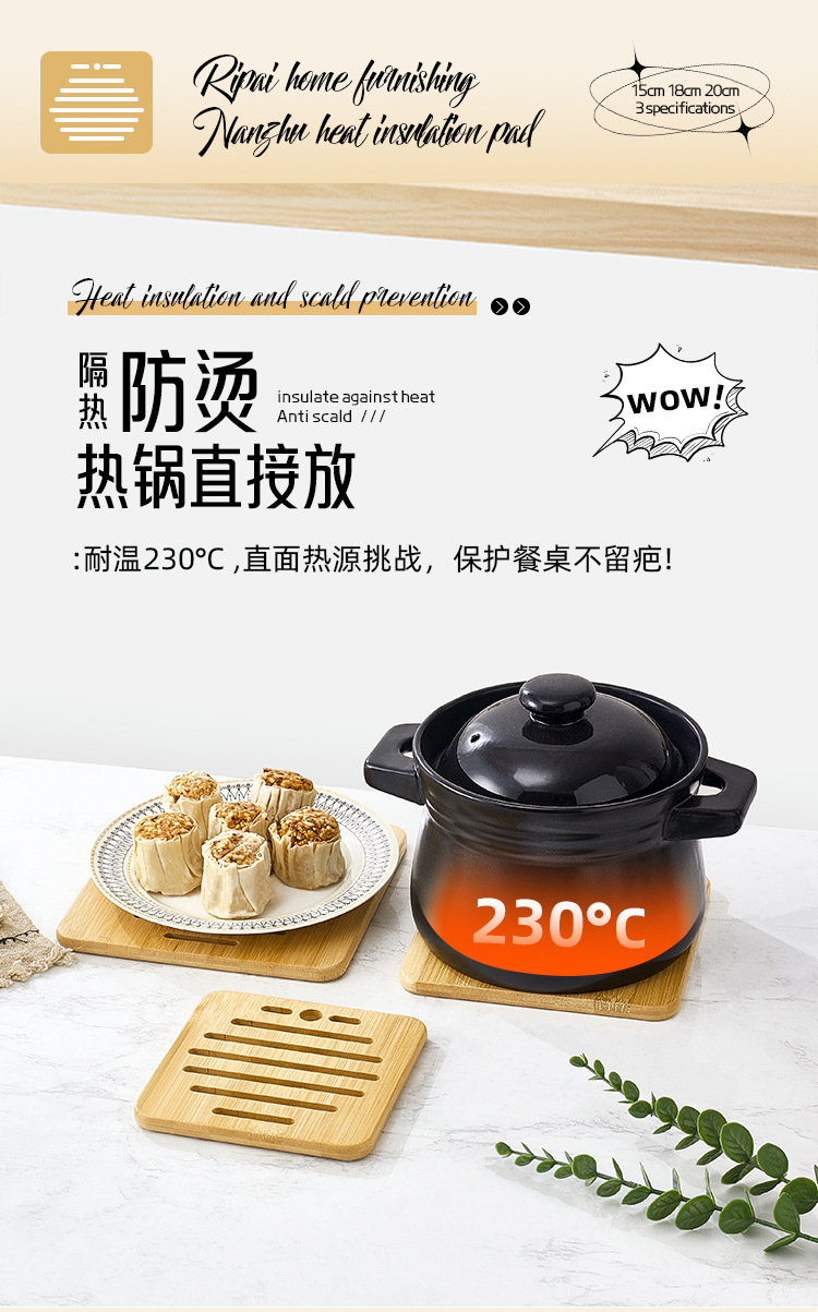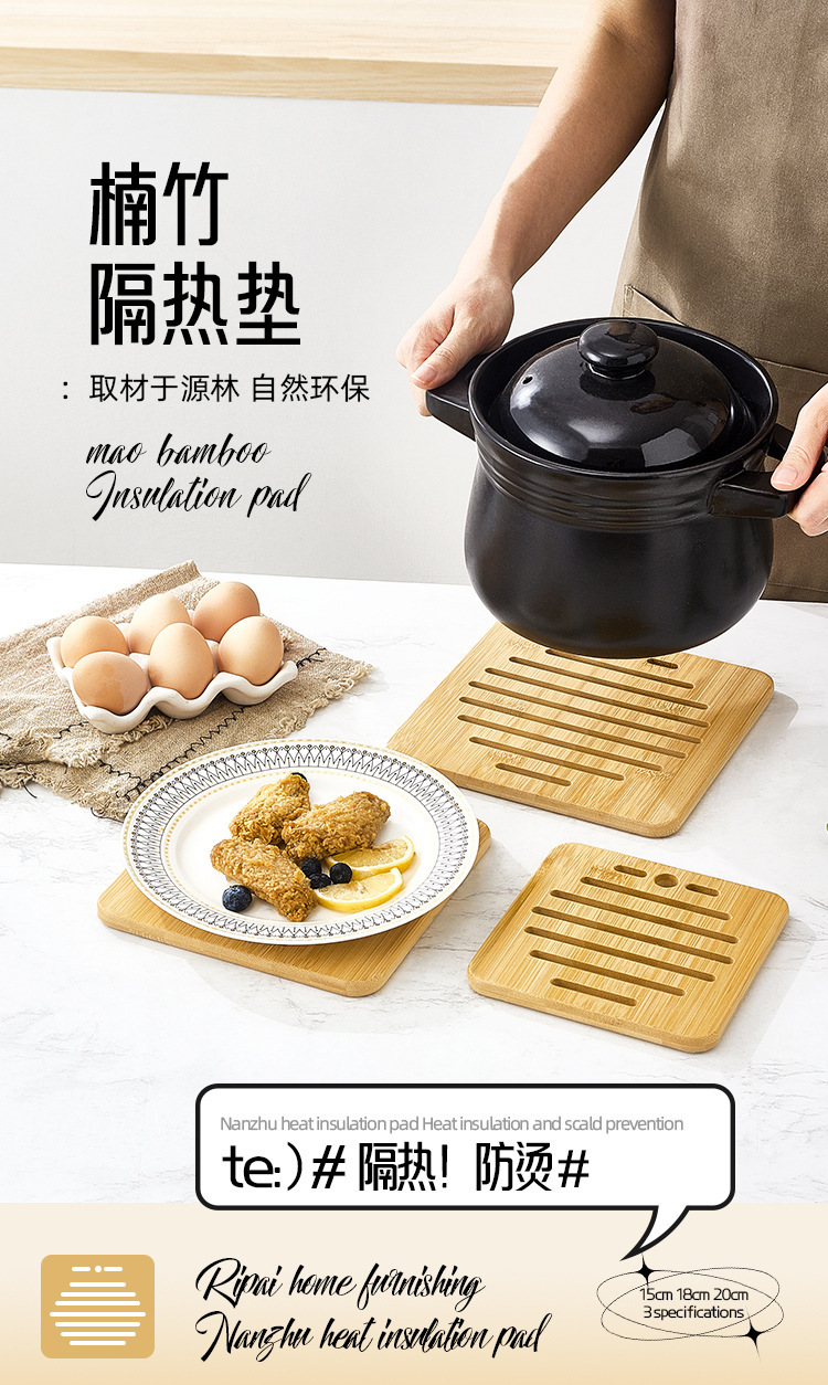 Nanzhu 화상 방지 식탁 컵 받침 가정용 고온 방지 고급 식탁 매트 방습 냄비 매트 주방 목재 단열 매트