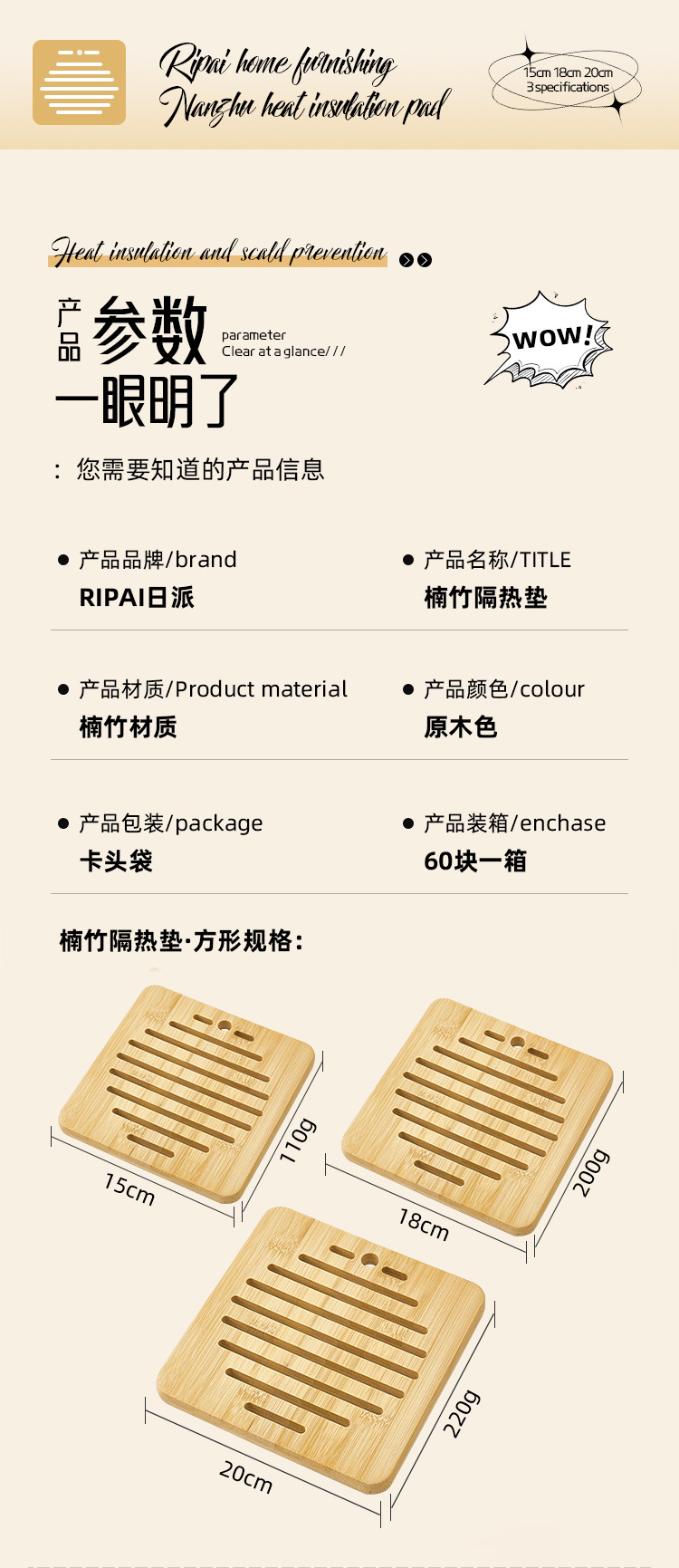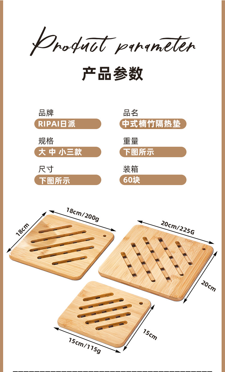 • SLQ0312 대나무 단열매트 (사각형 18cm)