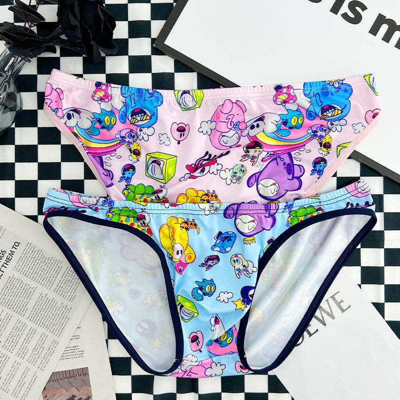남자 비키니 작은 브리프 통기성 스포츠 학생 만화 속옷 창조적 인 인쇄 바닥 바지 뚱뚱한 남자 증가스토어 가기