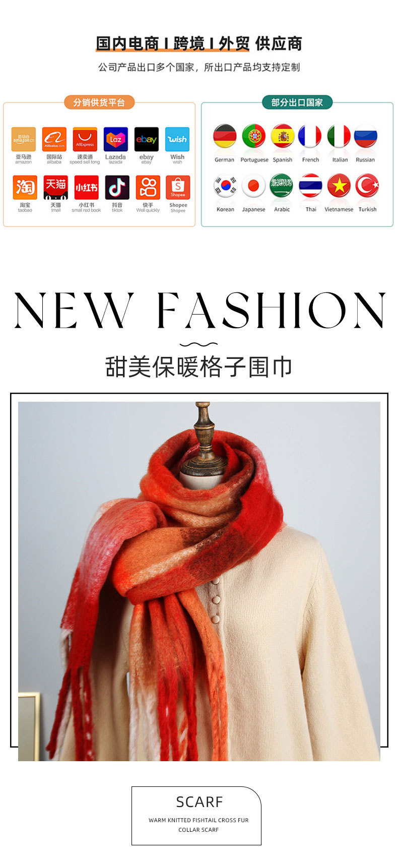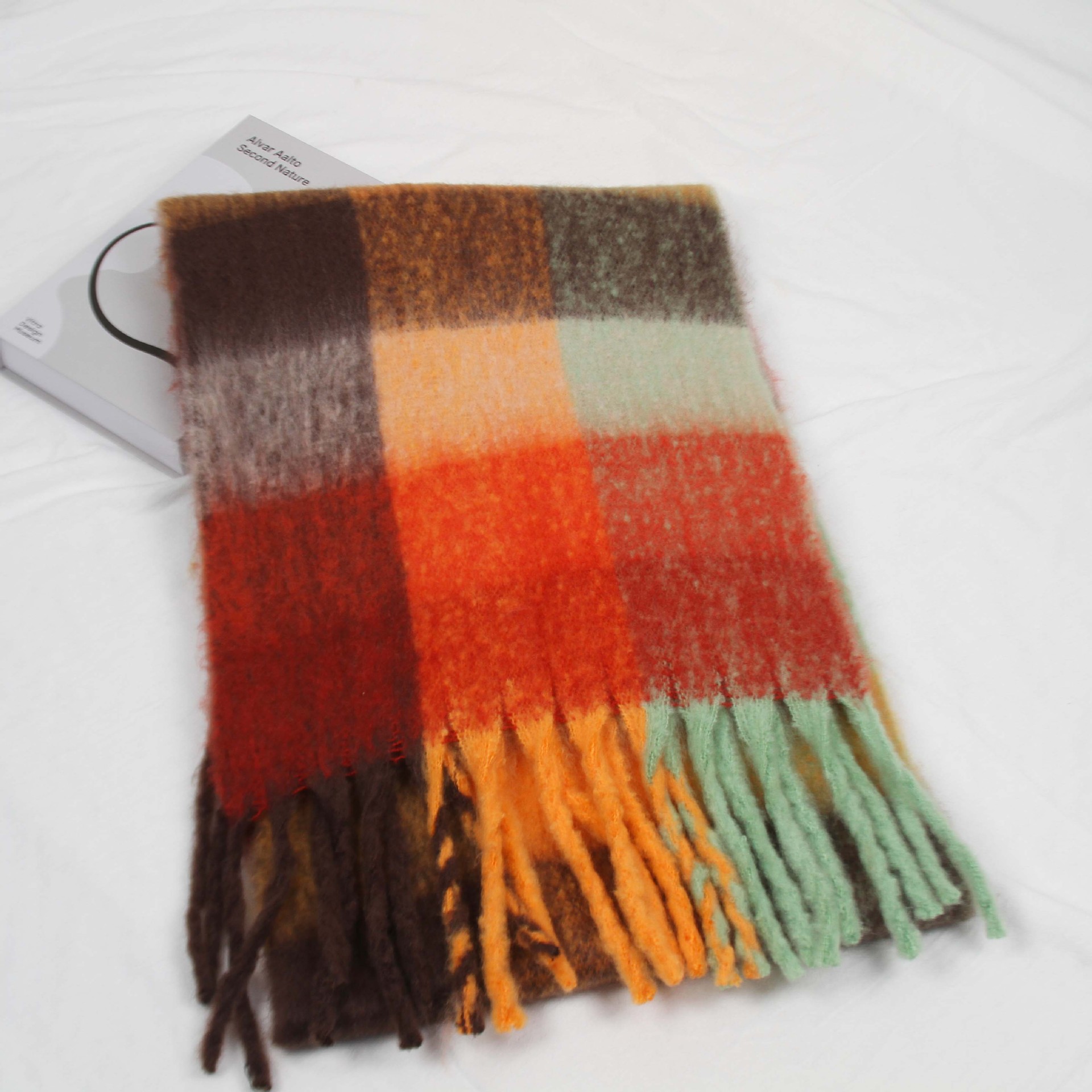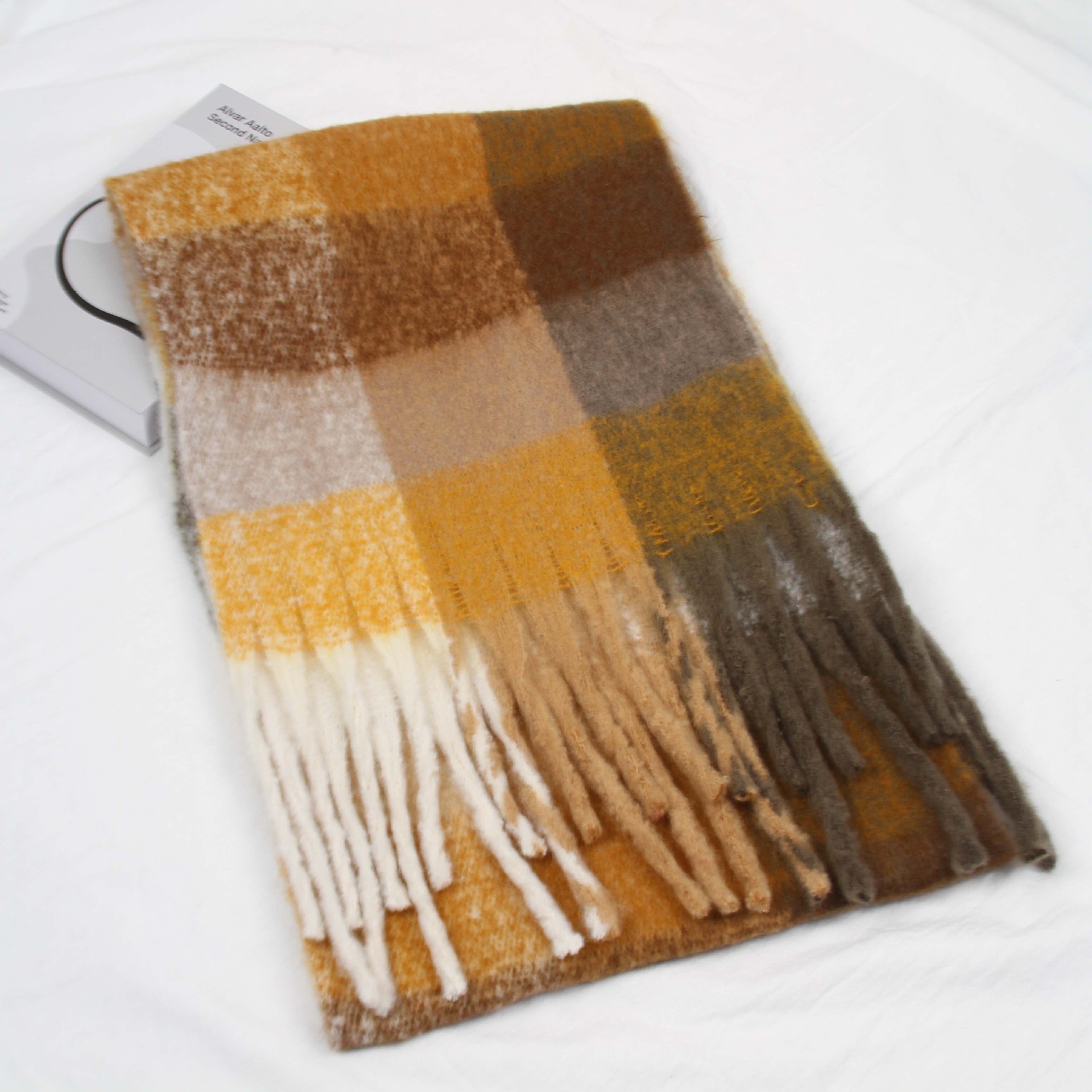 겨울 하이 엔드 두꺼운 따뜻한 스카프 Maillard 그라디언트 체크 무늬 스카프 애호가 컬러 체크 무늬 귀여운 올 매치