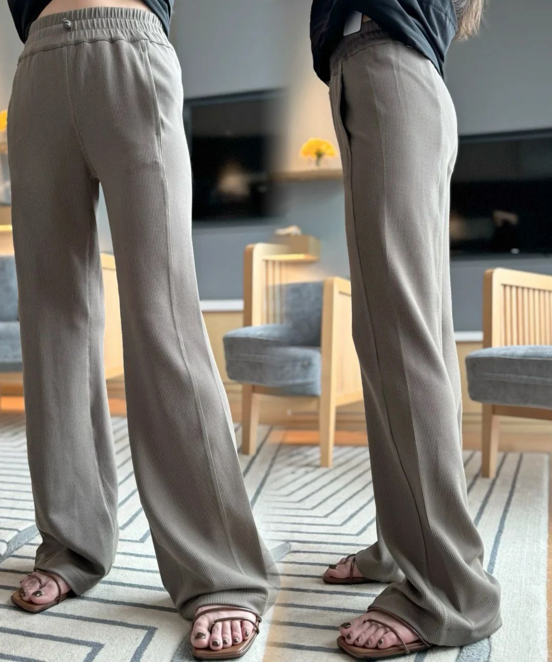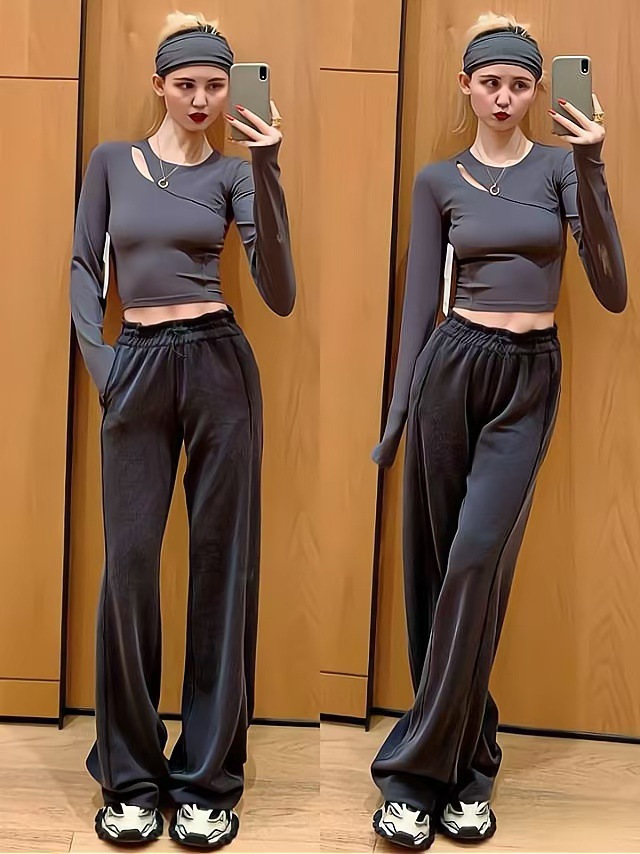 Threaded Gods 바지 마이크로 웨어 요가 바지 고탄성 엉덩이 리프팅 스포츠 빠른 건조 캐주얼 스레드 요가 트럼펫 바지 여성스토어 가기