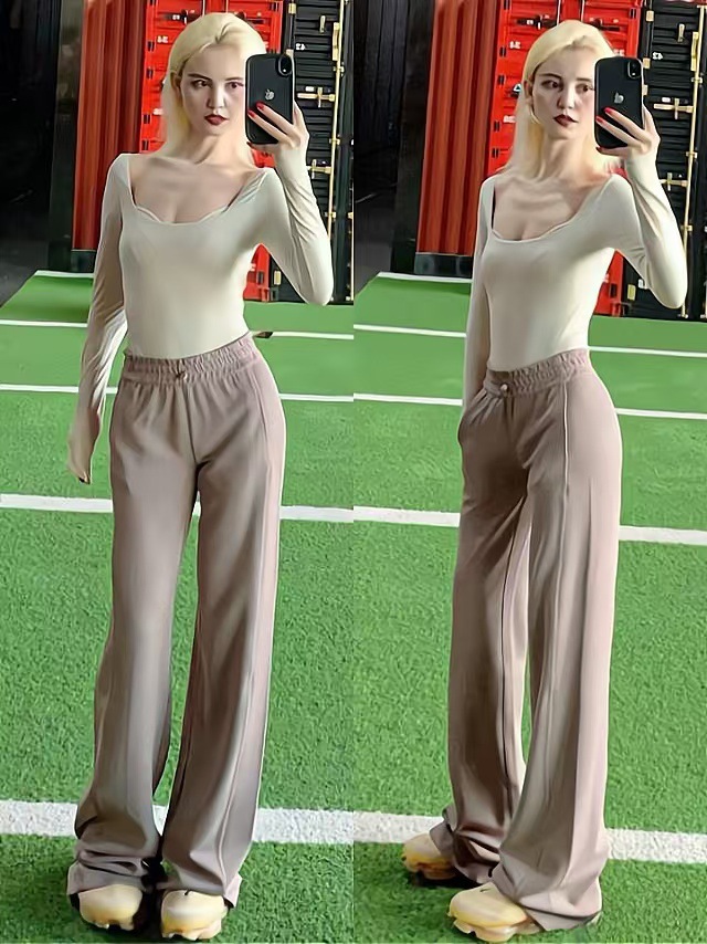 Threaded Gods 바지 마이크로 웨어 요가 바지 고탄성 엉덩이 리프팅 스포츠 빠른 건조 캐주얼 스레드 요가 트럼펫 바지 여성