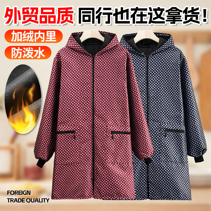 새로운 가을과 겨울 기모 작업복 유니섹스 성인 방수 및 오일 방지 주방 앞치마 가정용 긴 소매 지퍼 작업복스토어 가기