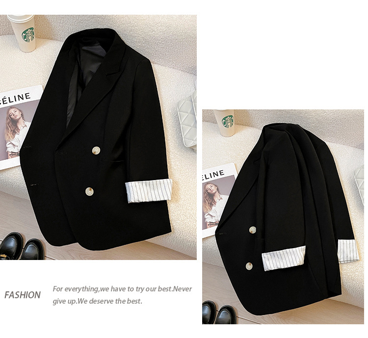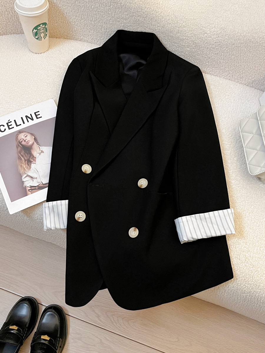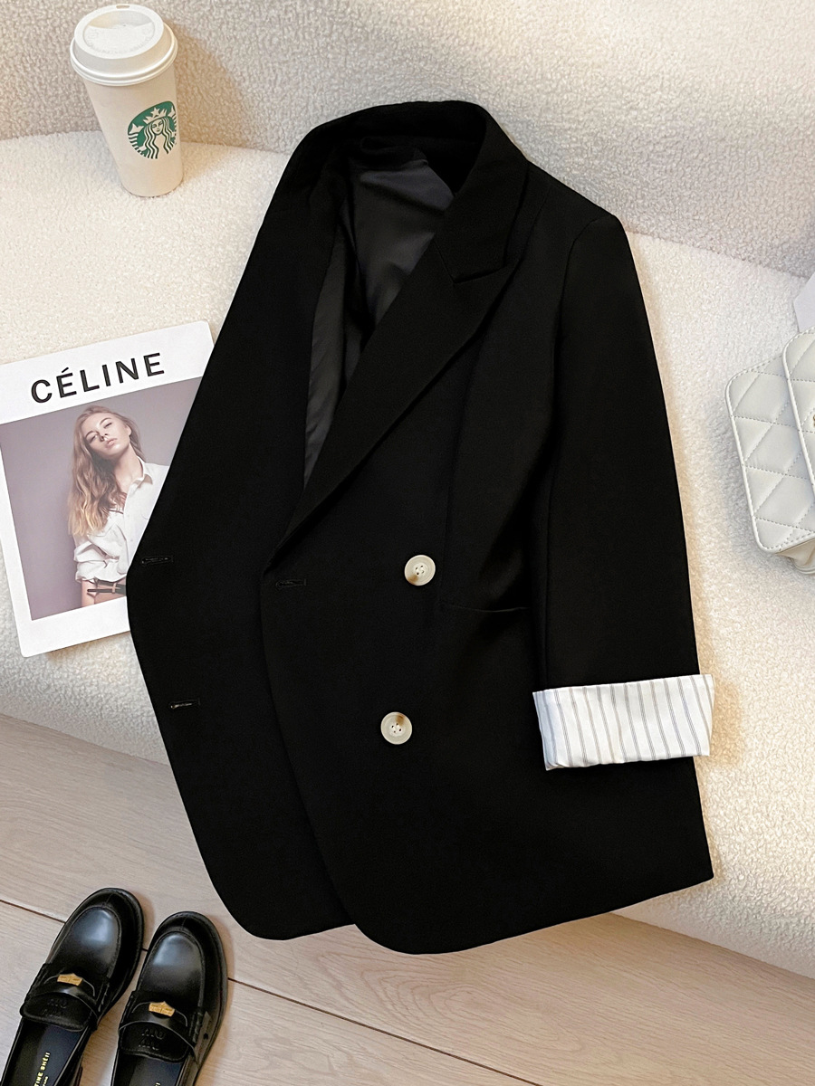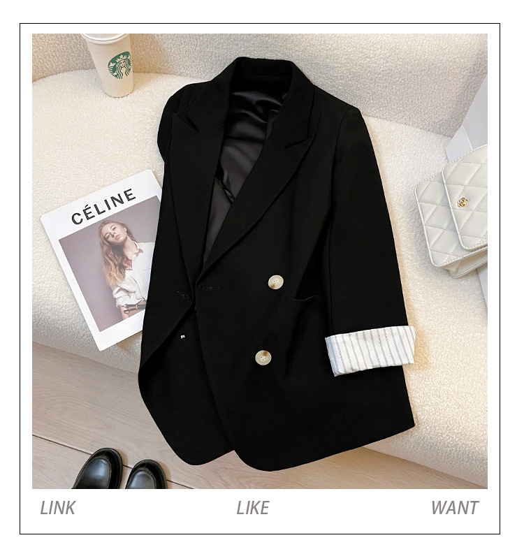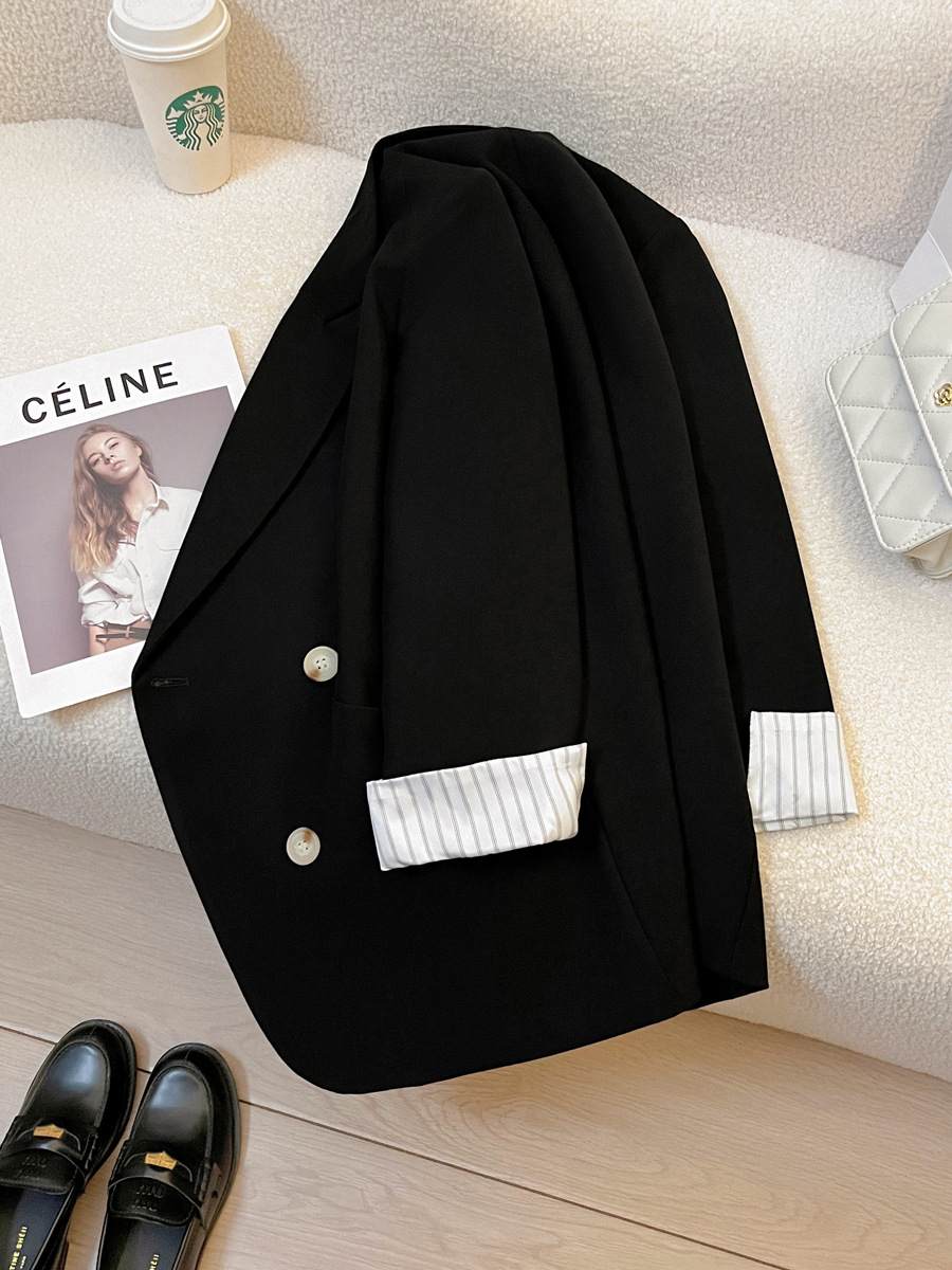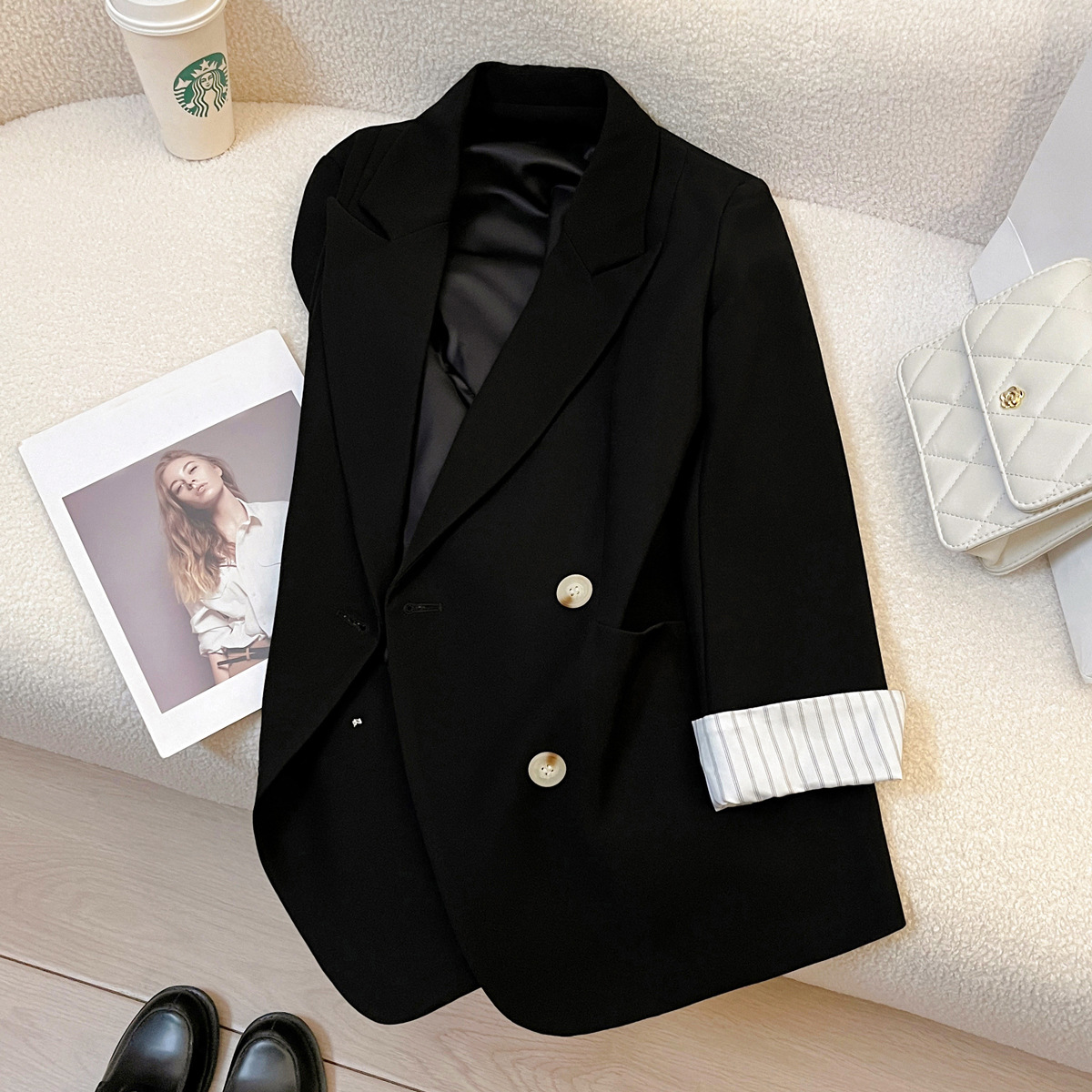 올해 유행하는 블랙 스트라이프 여성용 블레이저 2025 가을 신상품, 우아하고 루즈한 디자인의 출퇴근용 정장