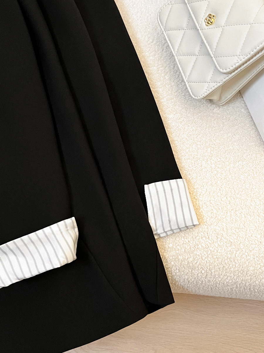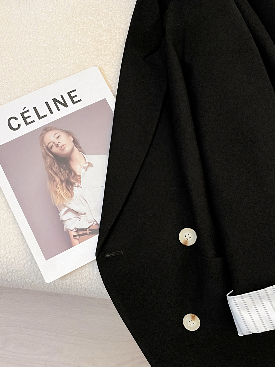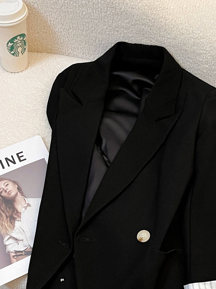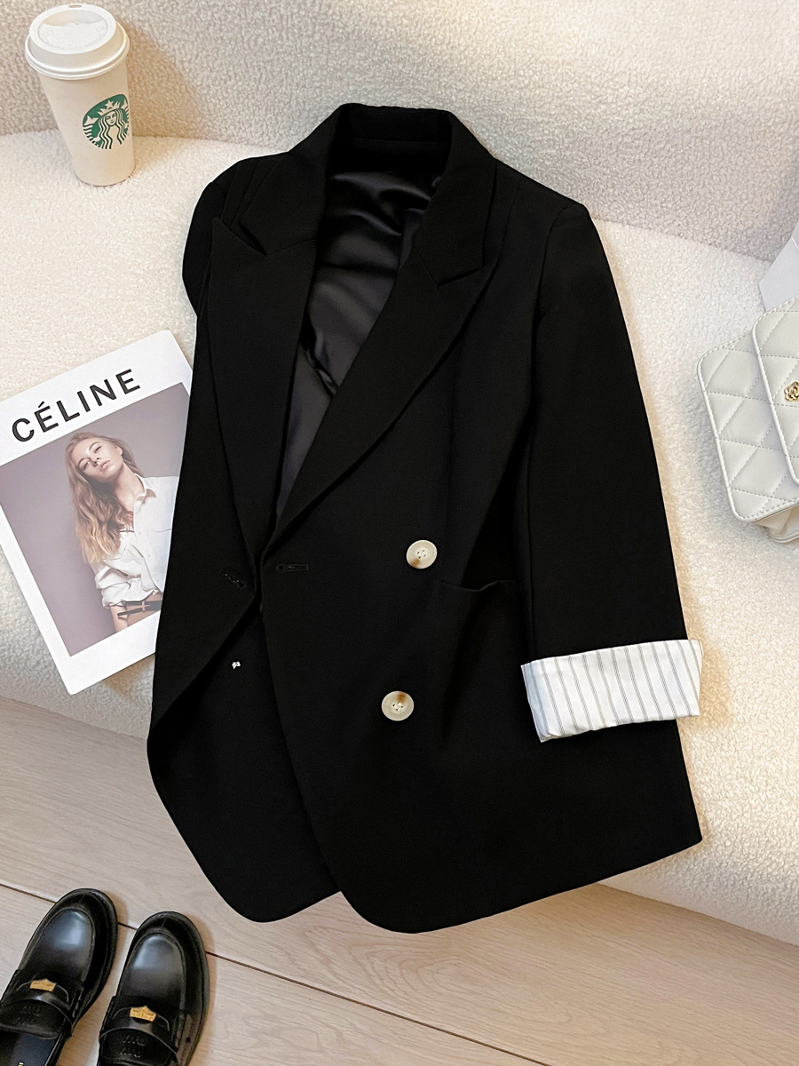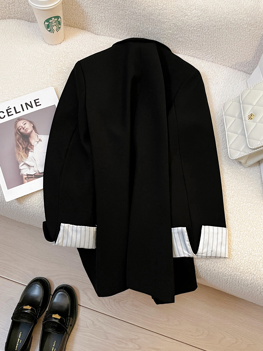 올해 유행하는 블랙 스트라이프 여성용 블레이저 2025 가을 신상품, 우아하고 루즈한 디자인의 출퇴근용 정장