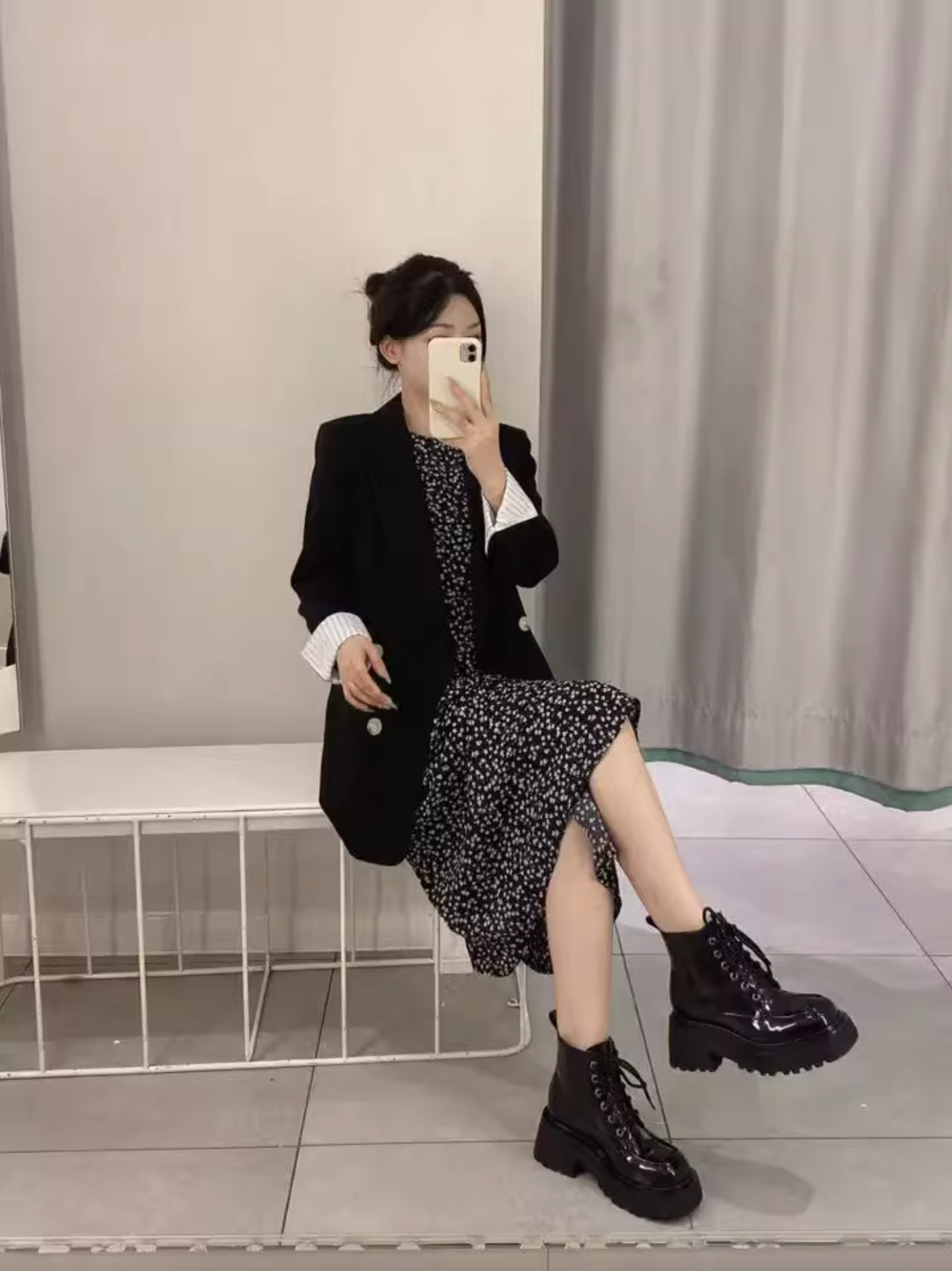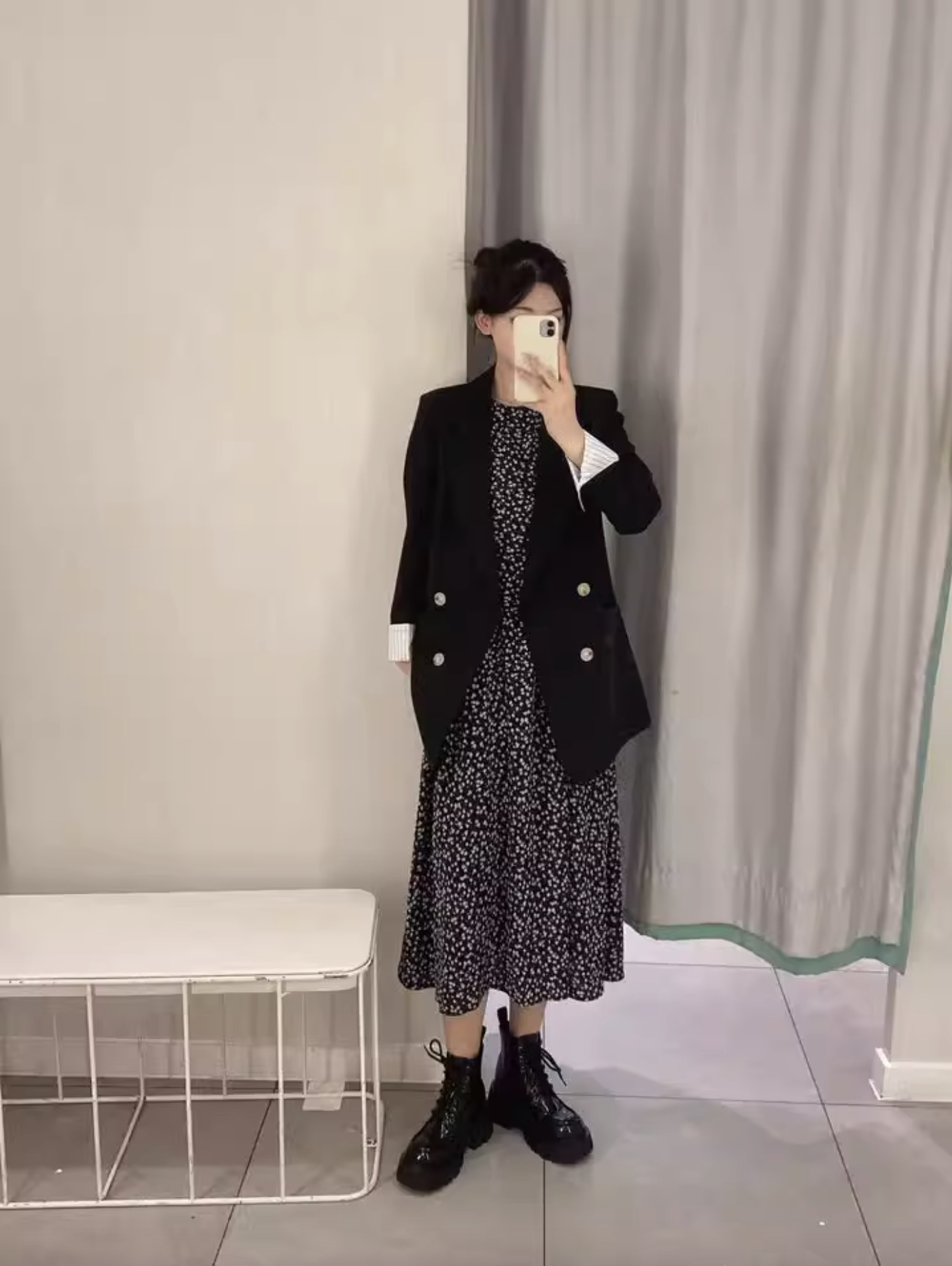 올해 유행하는 블랙 스트라이프 여성용 블레이저 2025 가을 신상품, 우아하고 루즈한 디자인의 출퇴근용 정장스토어 가기