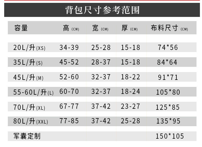 • 검정색, 크기: 군용 가방(90-100리터에 적합)
