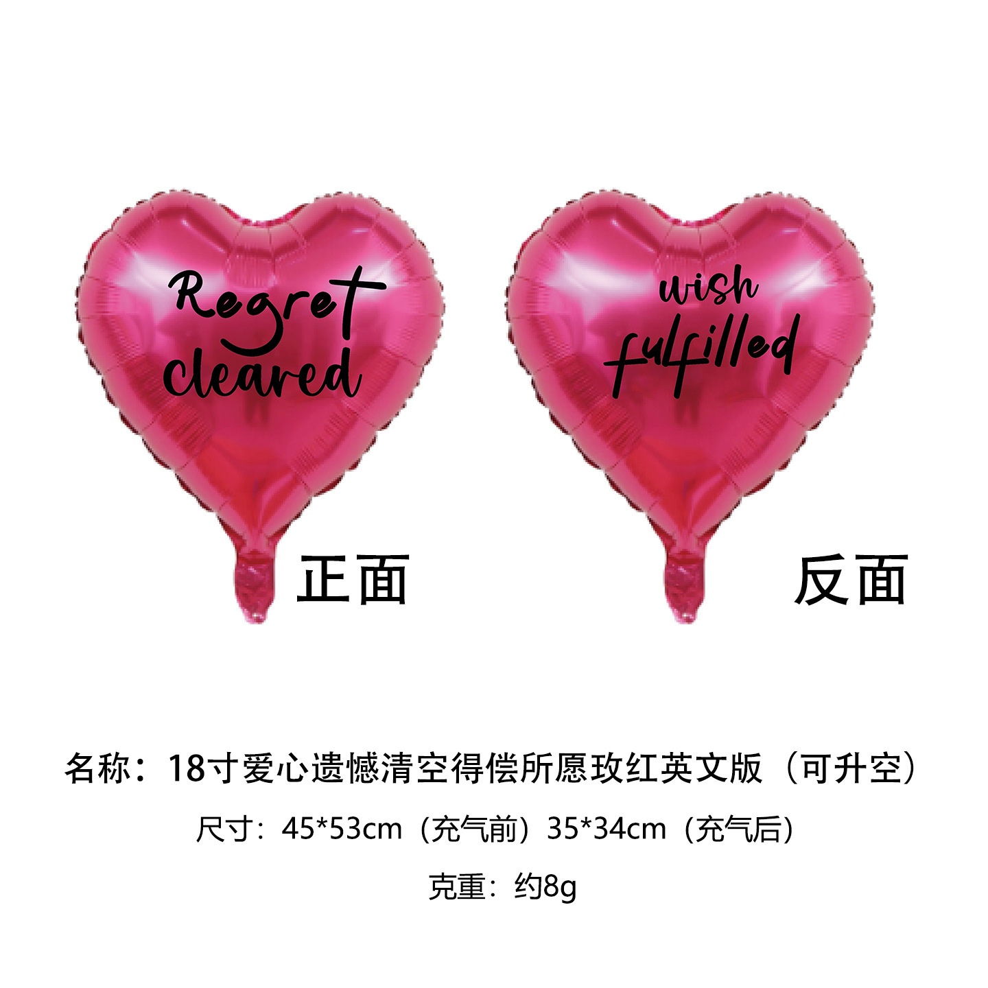 • 18inch 사랑의 아쉬움을 담아 소원 성취, 핫핑크 영문판 (양면, 끈 없음)