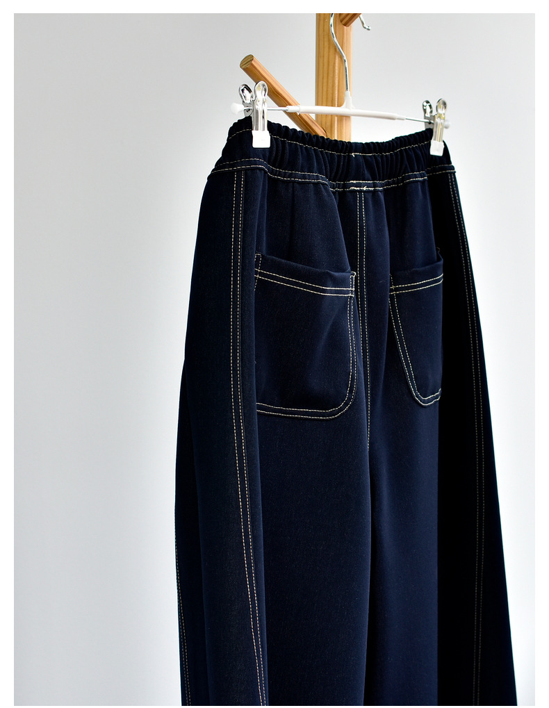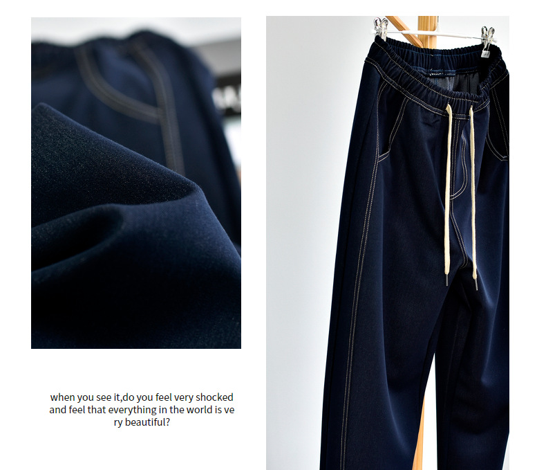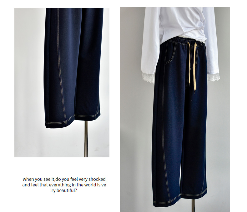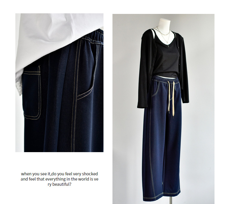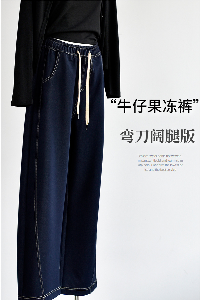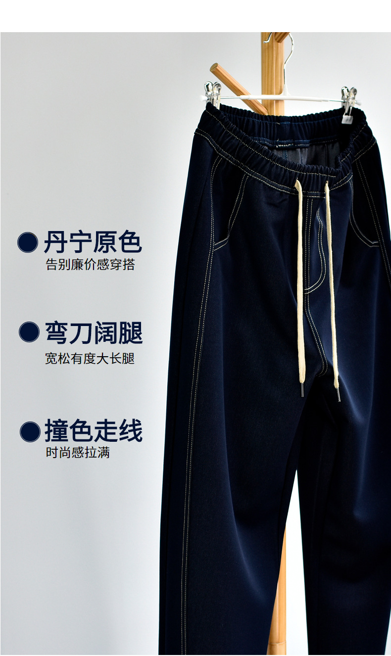 [데님 와이드 팬츠] 가을 여성 신작 데님 데님 컬러 대비 와이드 레그 캐주얼 바지 여성