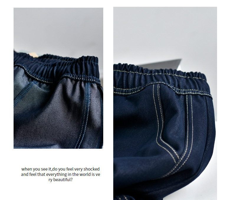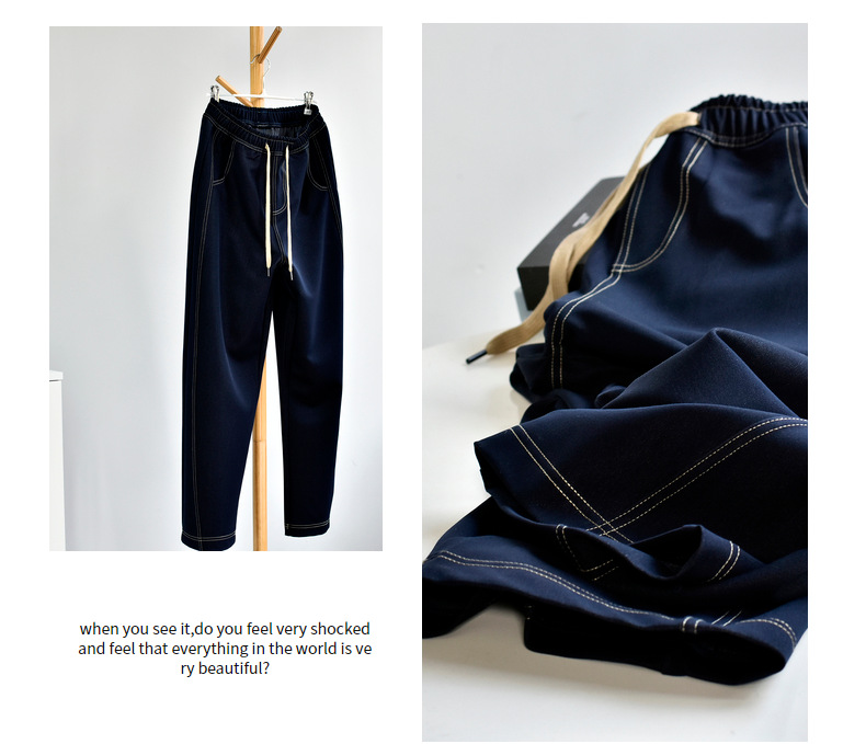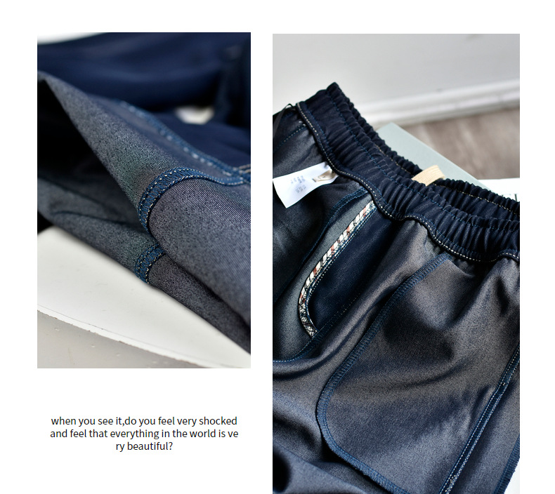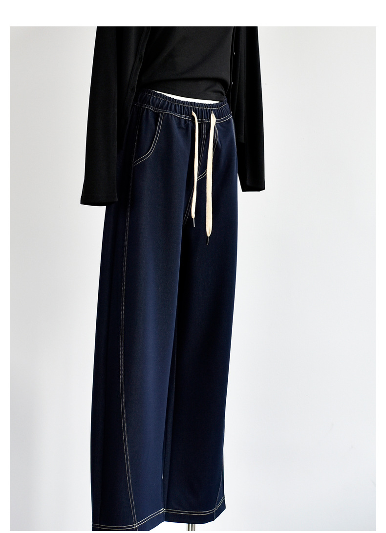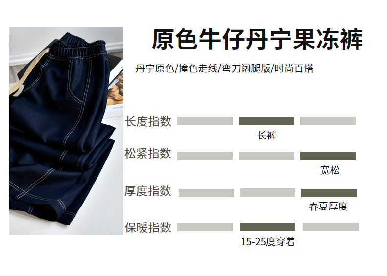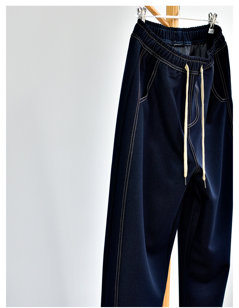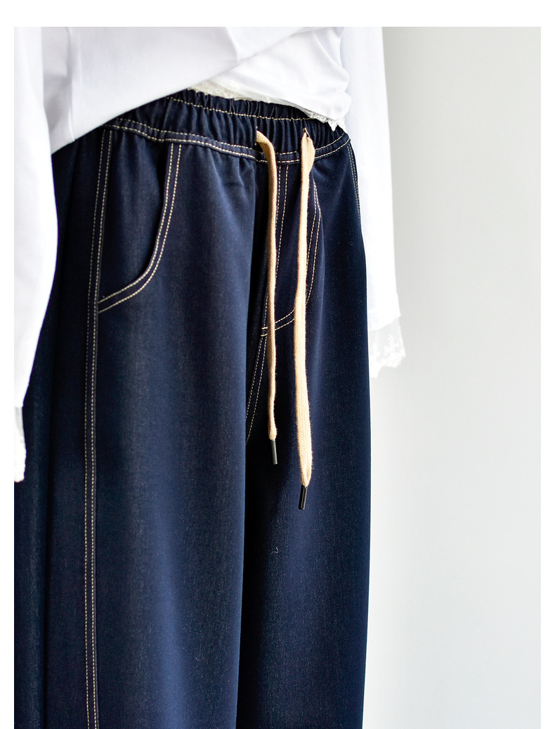 [데님 와이드 팬츠] 가을 여성 신작 데님 데님 컬러 대비 와이드 레그 캐주얼 바지 여성