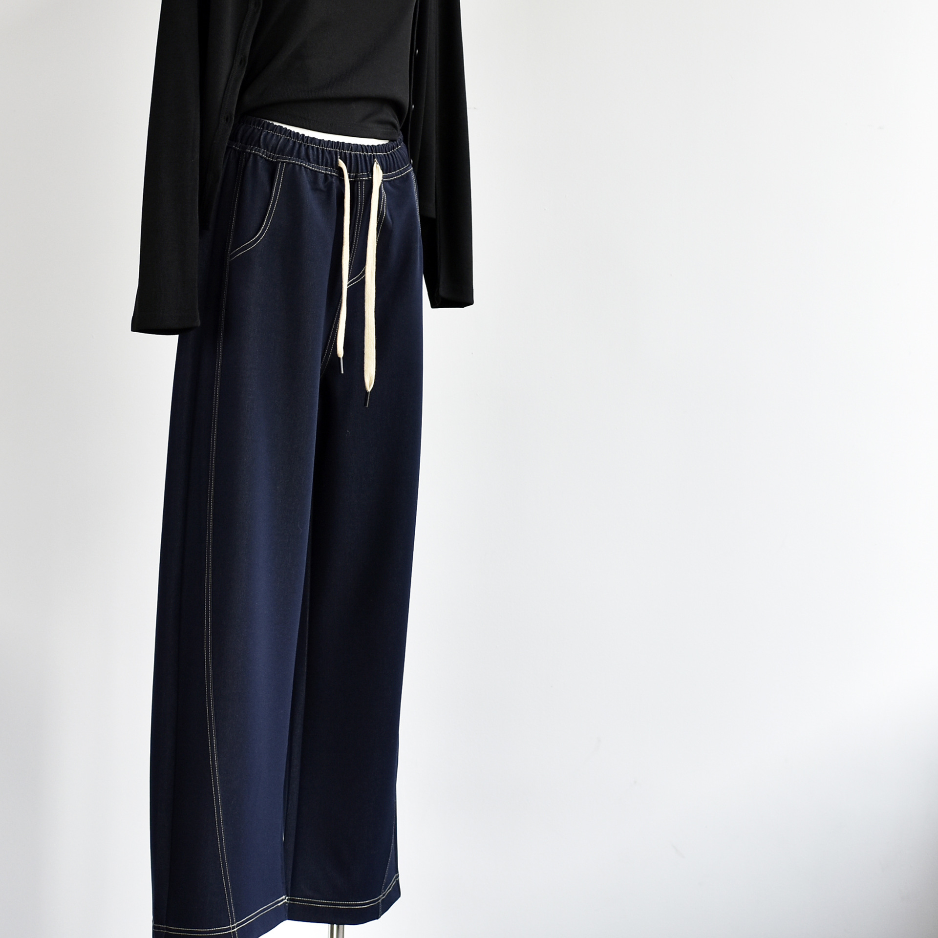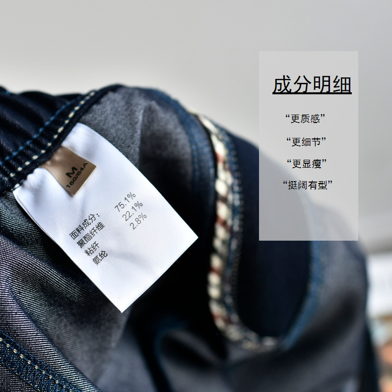 [데님 와이드 팬츠] 가을 여성 신작 데님 데님 컬러 대비 와이드 레그 캐주얼 바지 여성스토어 가기