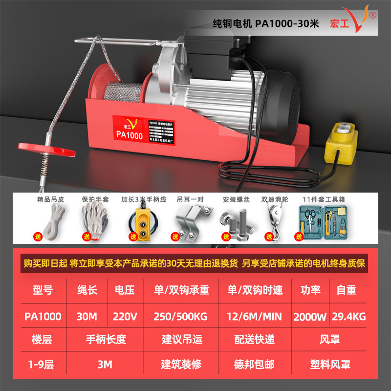 미니 전기 호이스트 220V 가정용 소형 크레인 1/0.5 톤 호이스트 윈치 리프팅 크레인