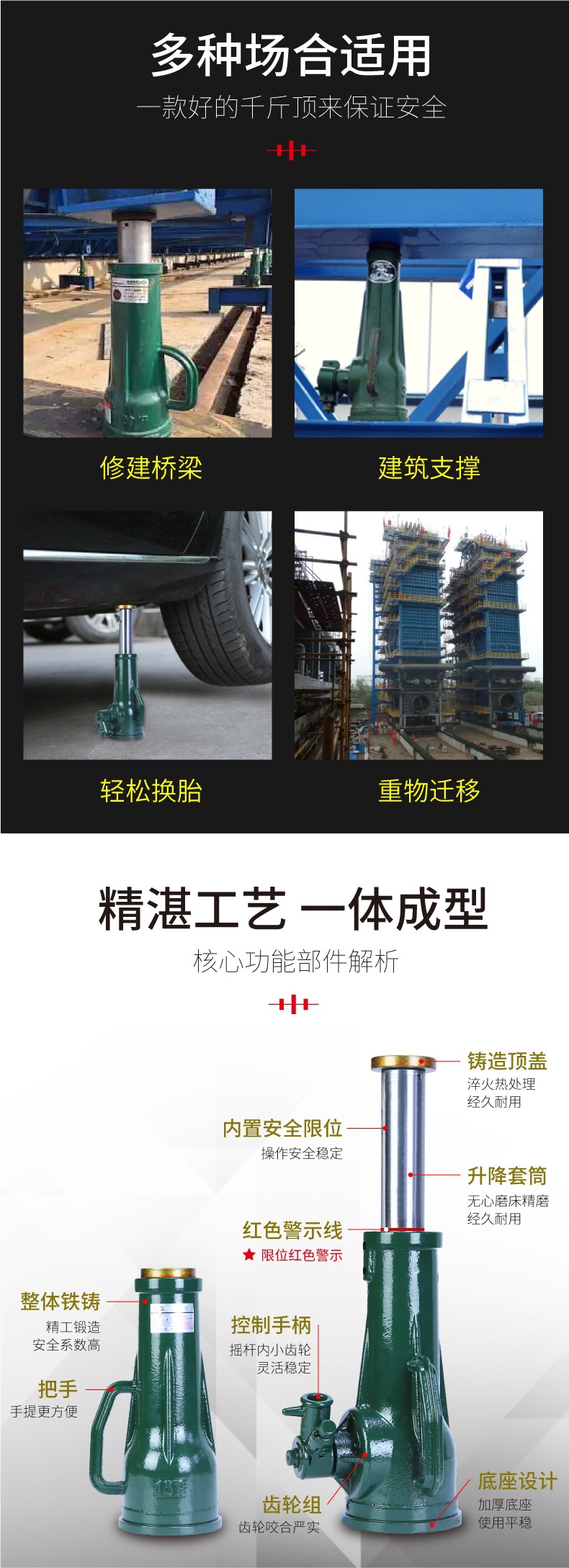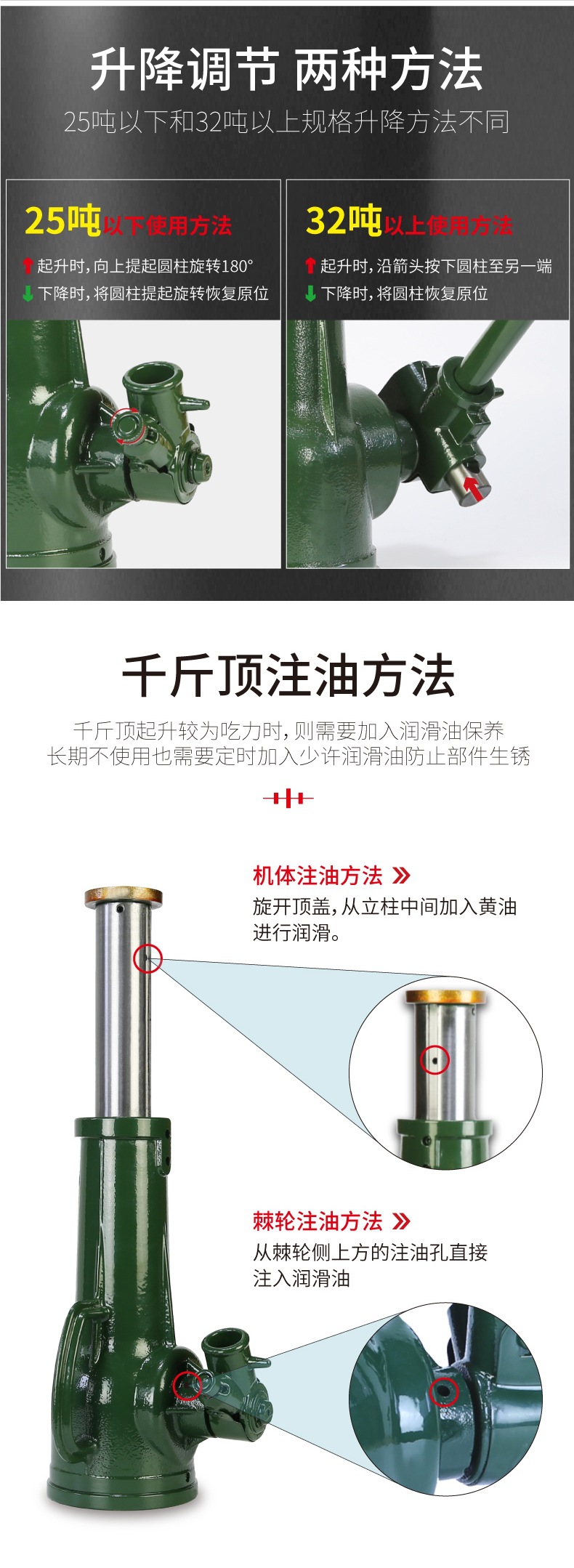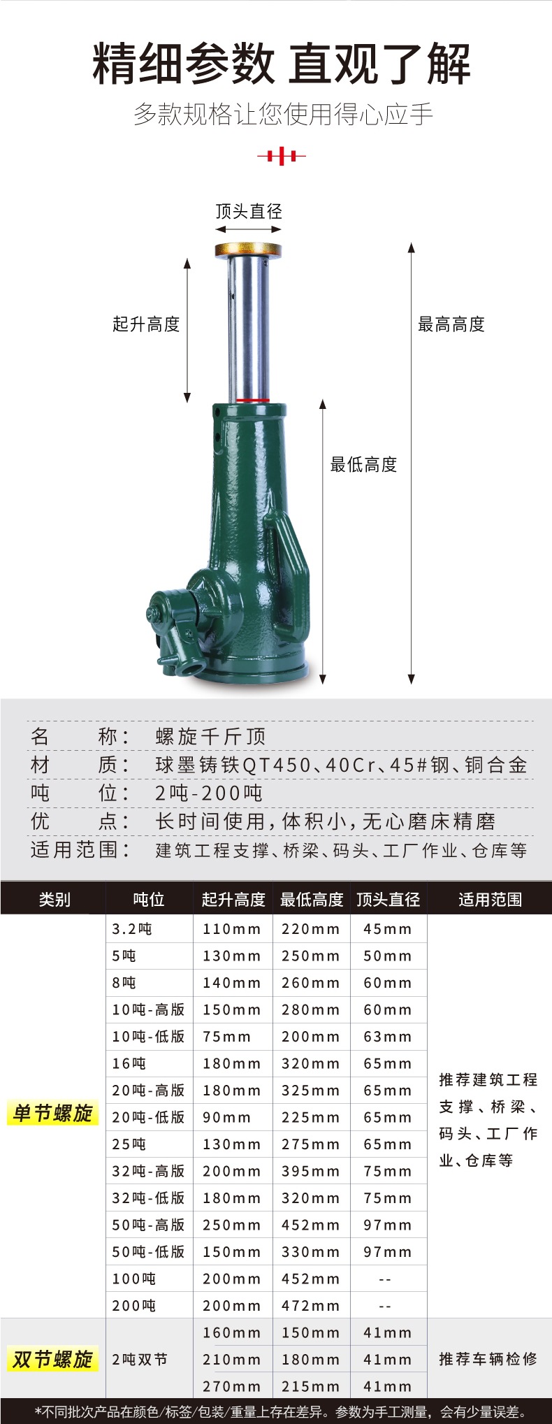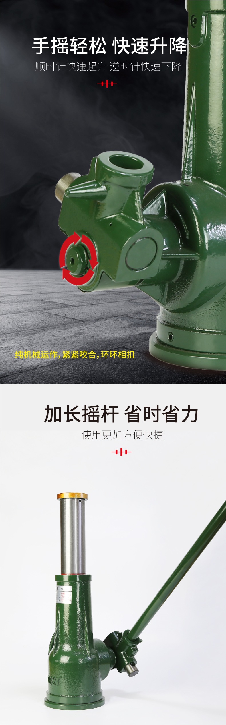 스크류 잭 기계식 50/32T 기어 형 핸드 슬리브 수직 리프팅 머신 10T5 톤 20 중장비스토어 가기