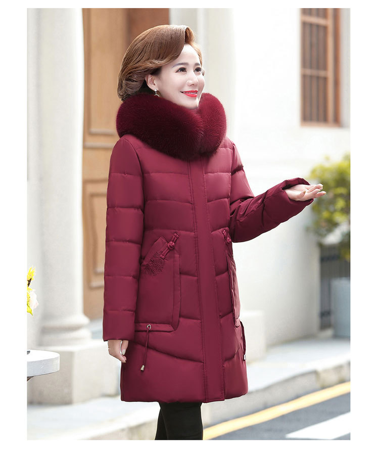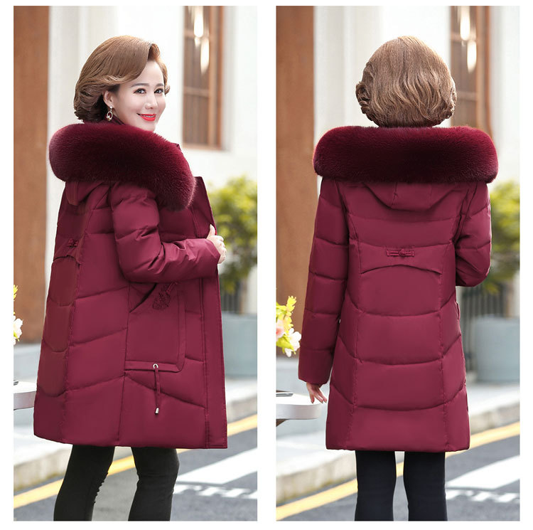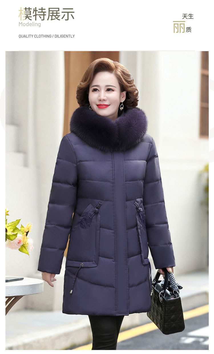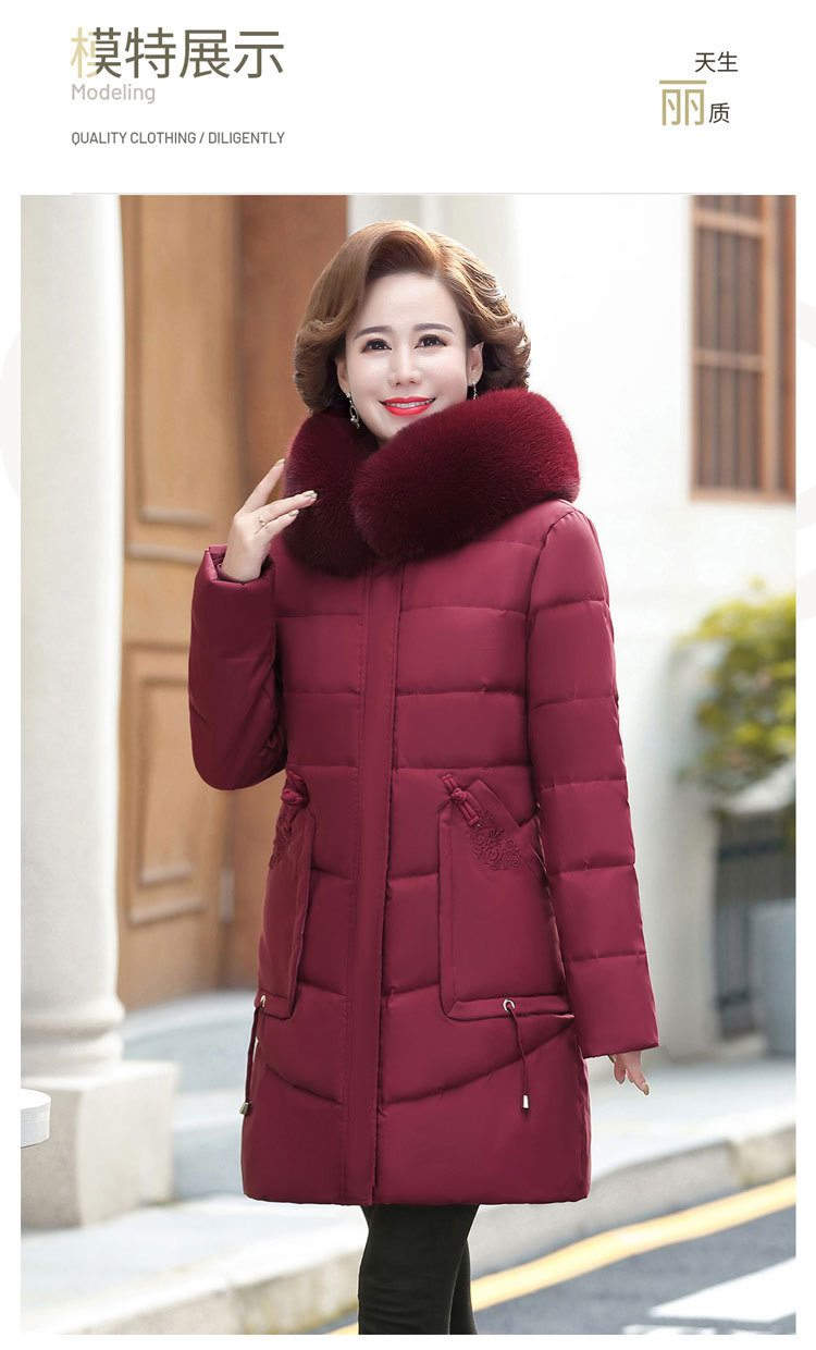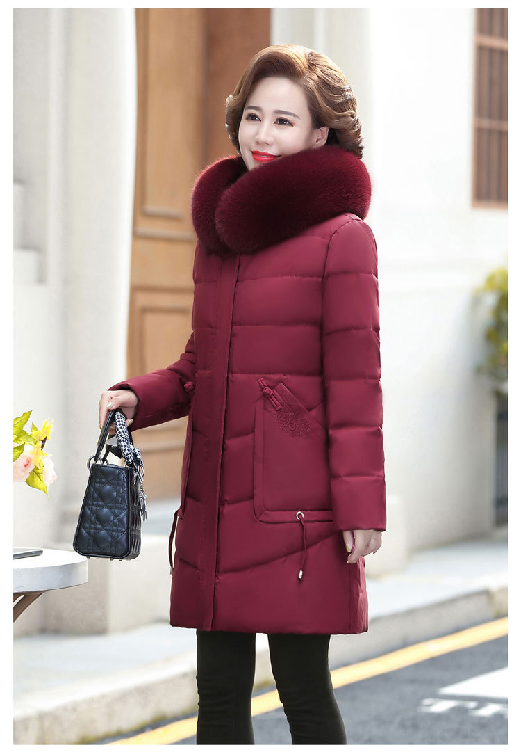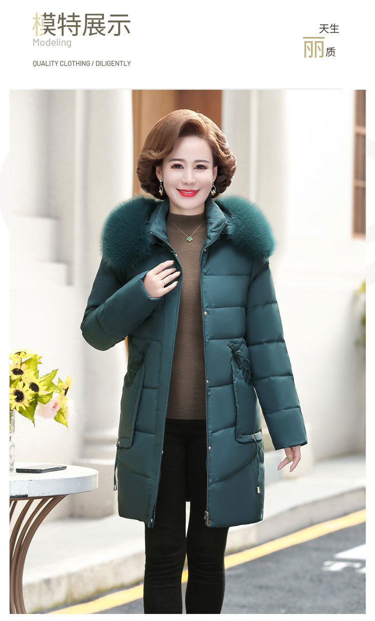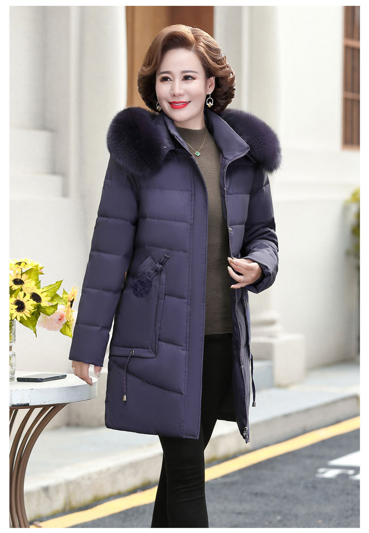 정품 하이 엔드 브랜드 겨울 중년 어머니 여성 중년 다운 재킷 따뜻한 올 매치 울 칼라 후드 재킷