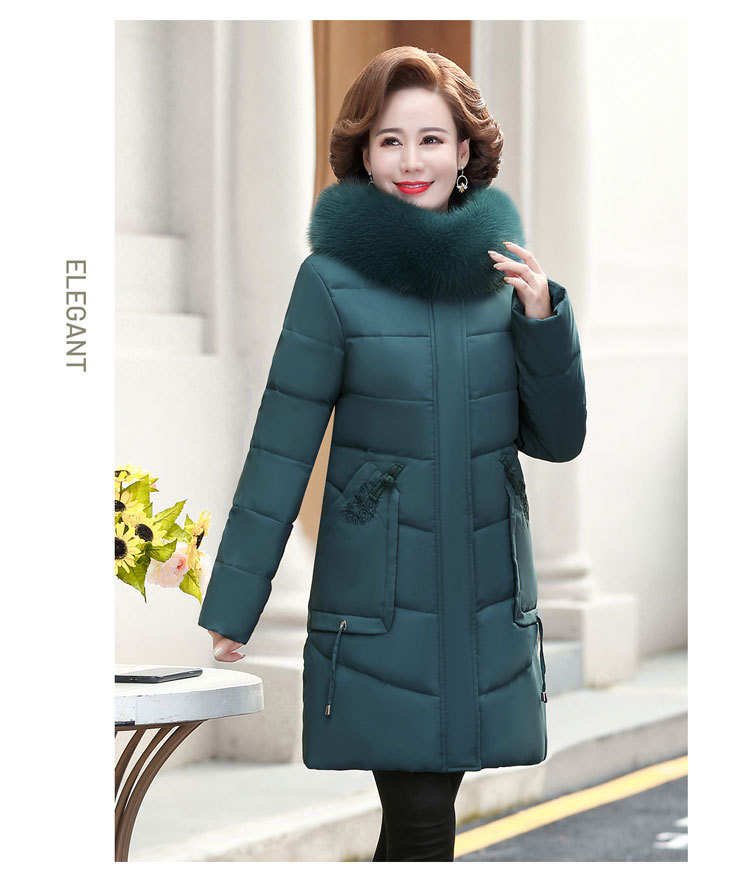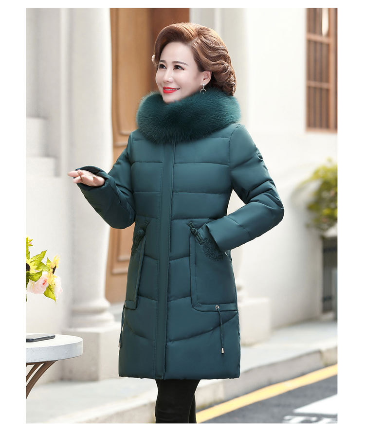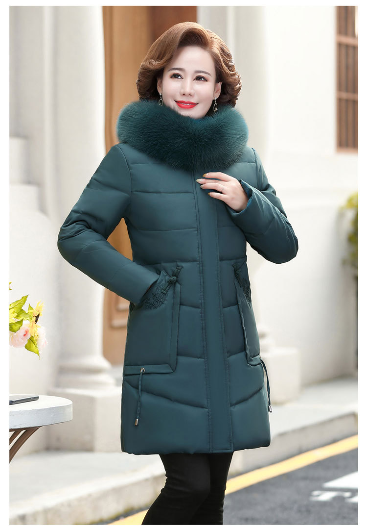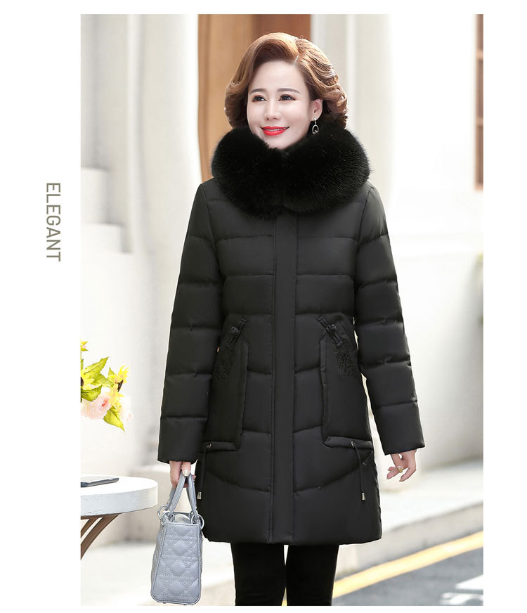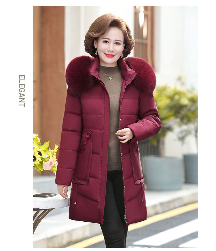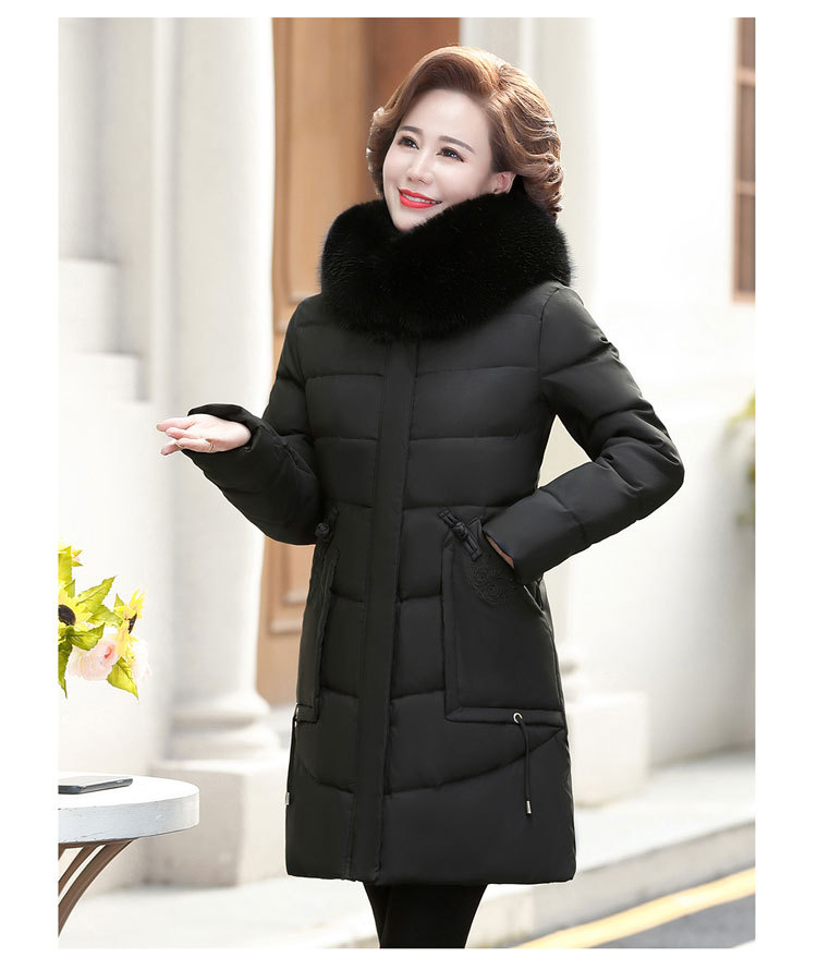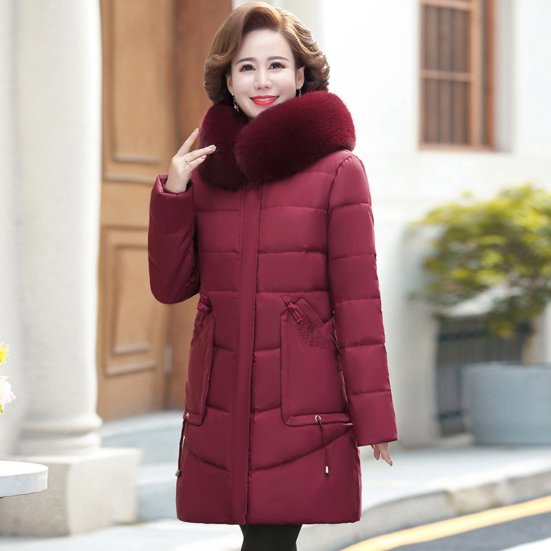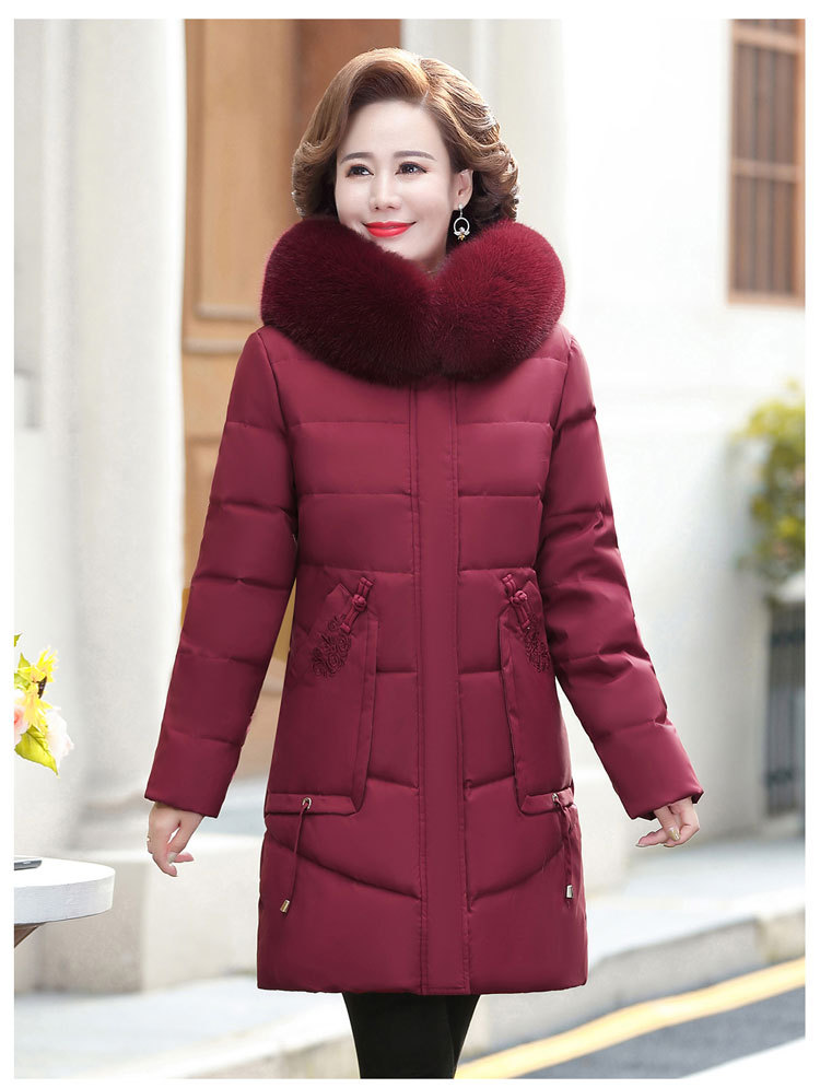 정품 하이 엔드 브랜드 겨울 중년 어머니 여성 중년 다운 재킷 따뜻한 올 매치 울 칼라 후드 재킷