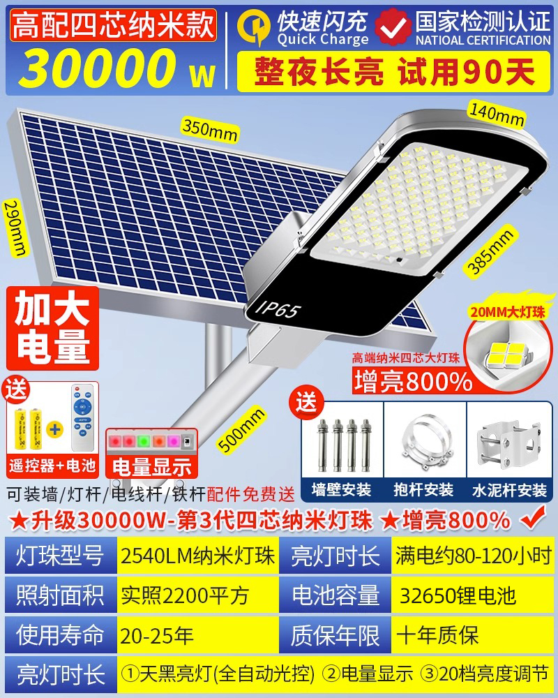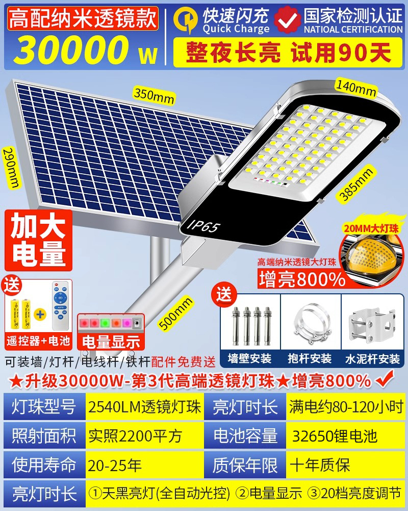 • 30000W 엔지니어링 모델 [2200 평방 미터] 어두울 때 자동 조명 + 밤새도록 밝음 + 리모콘★평생 보증