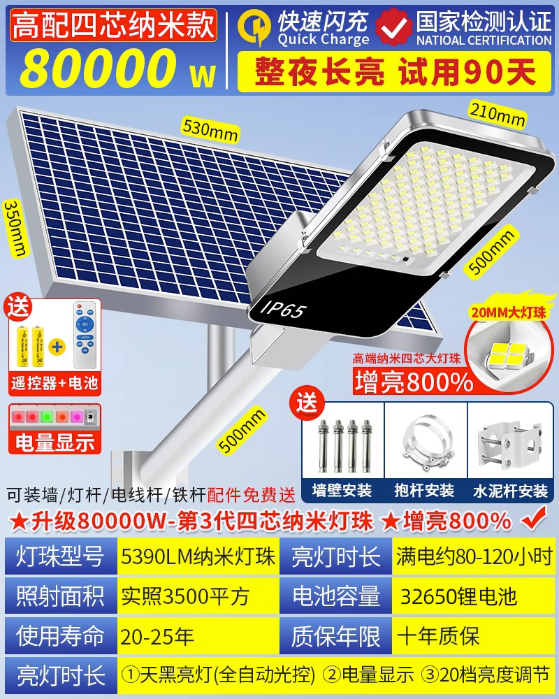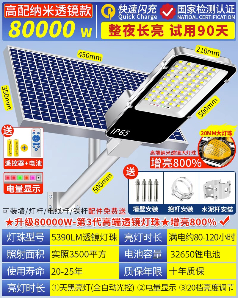 • 80000W 엔지니어링 모델 [3500 평방 미터] 어두울 때 자동 조명 + 밤새도록 밝음 + 리모콘★평생 보증