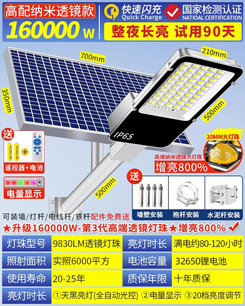 • 160000W 엔지니어링 모델 [6000 평방 미터] 어두울 때 자동 조명 + 밤새도록 밝음 + 리모콘★평생 보증