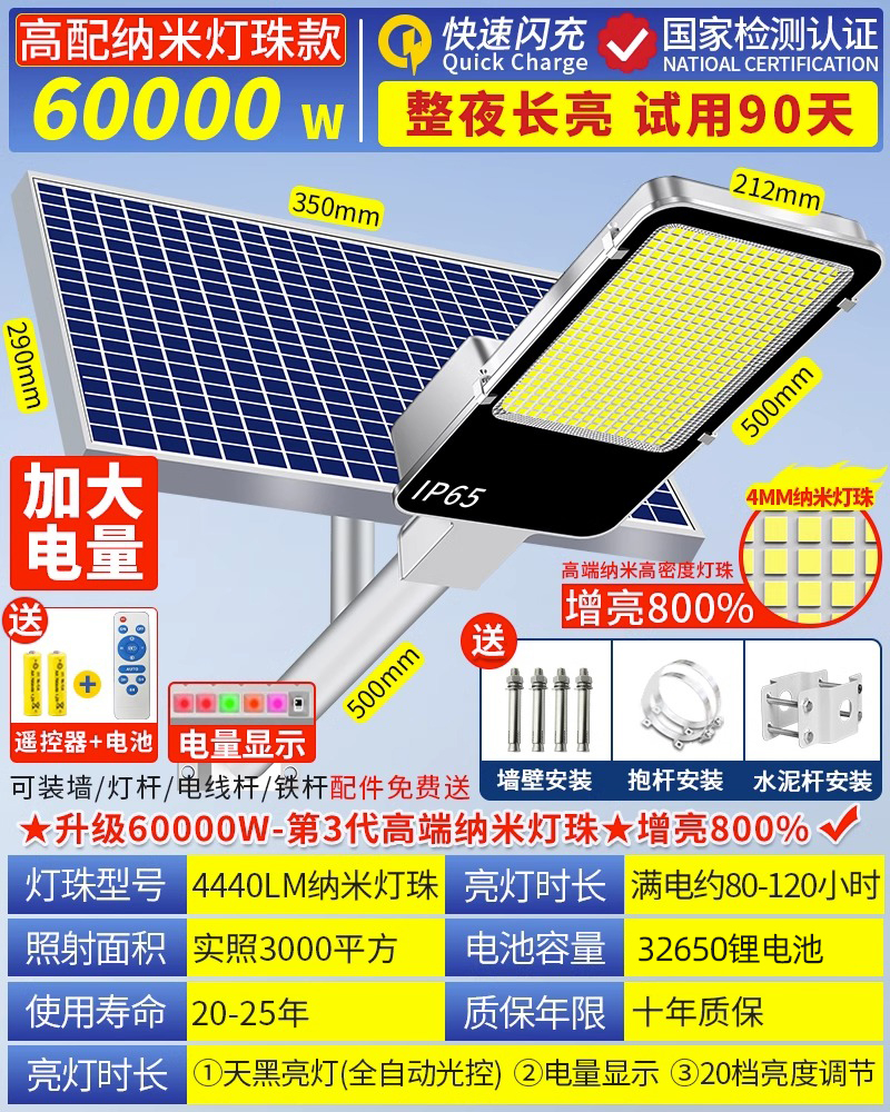 • 60000W 엔지니어링 모델 [3000 평방 미터] 어두워지면 자동 조명 + 밤새도록 밝음 + 리모콘★평생 보증