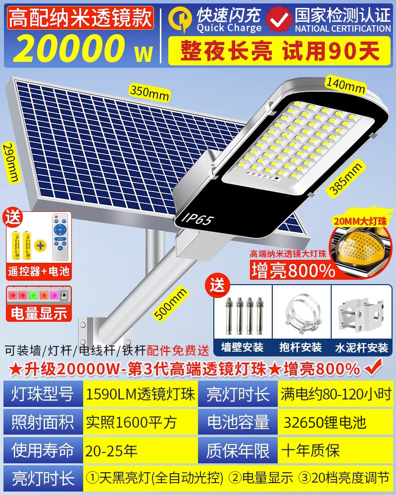 • 20000W 엔지니어링 모델 [1600 평방 미터] 어두울 때 자동 조명 + 밤새도록 밝음 + 리모콘★평생 보증