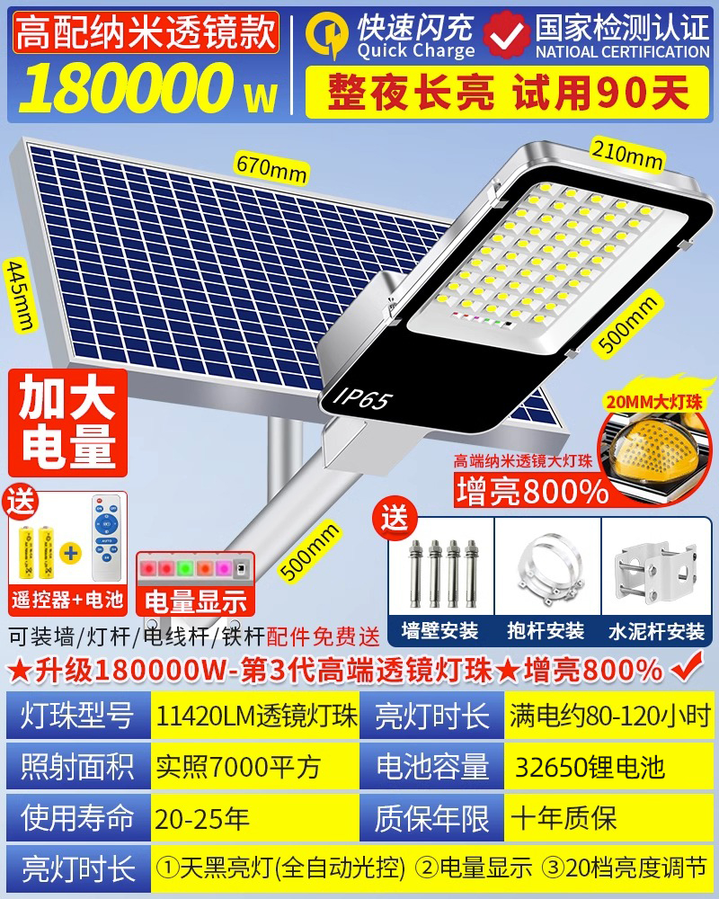 • 180000W 엔지니어링 모델 [7000 평방 미터] 어두울 때 자동 조명 + 밤새도록 밝음 + 리모콘★평생 보증
