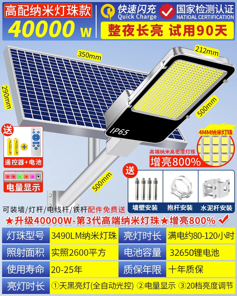• 40000W 엔지니어링 모델 [2600 평방 미터] 어두울 때 자동 조명 + 밤새도록 밝음 + 리모콘★평생 보증