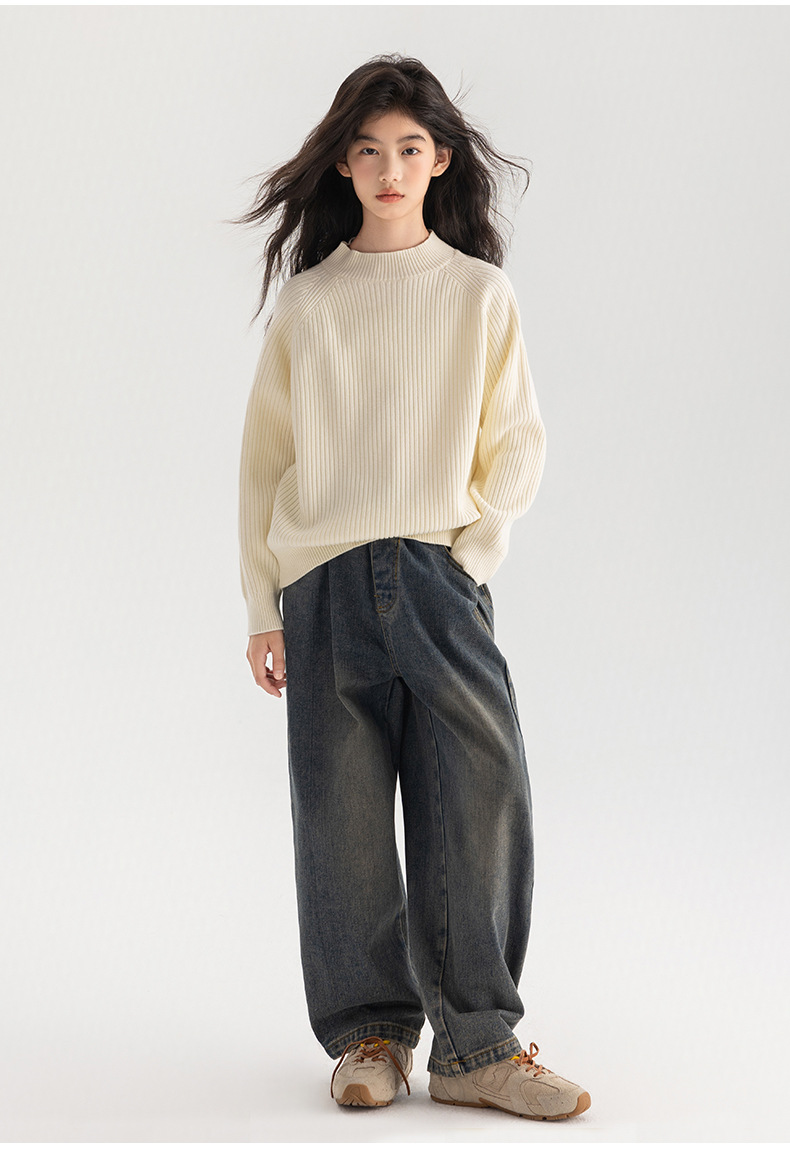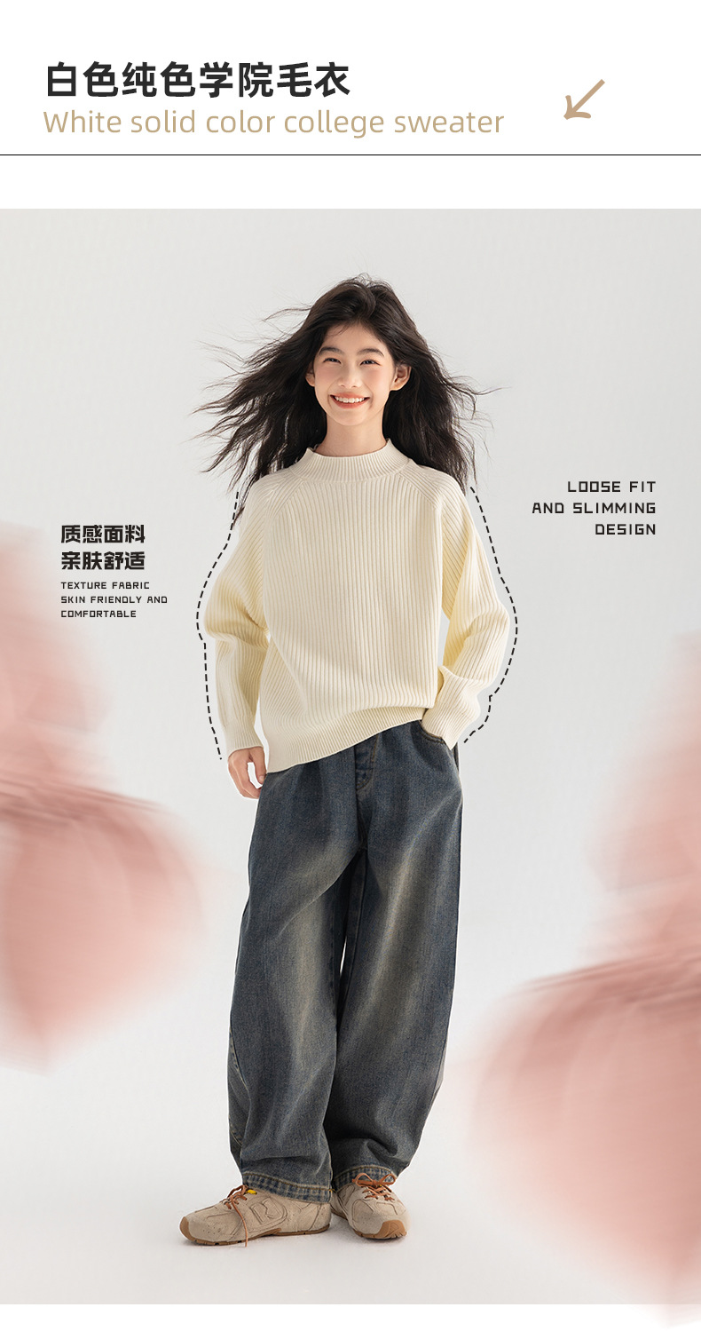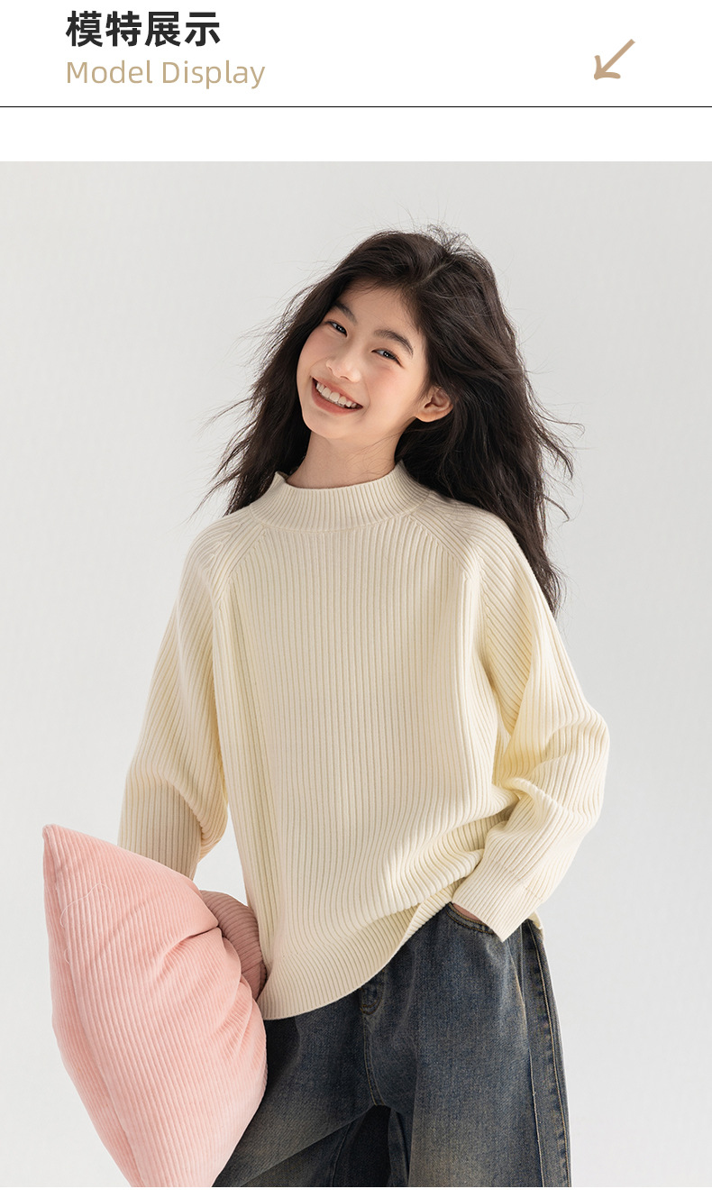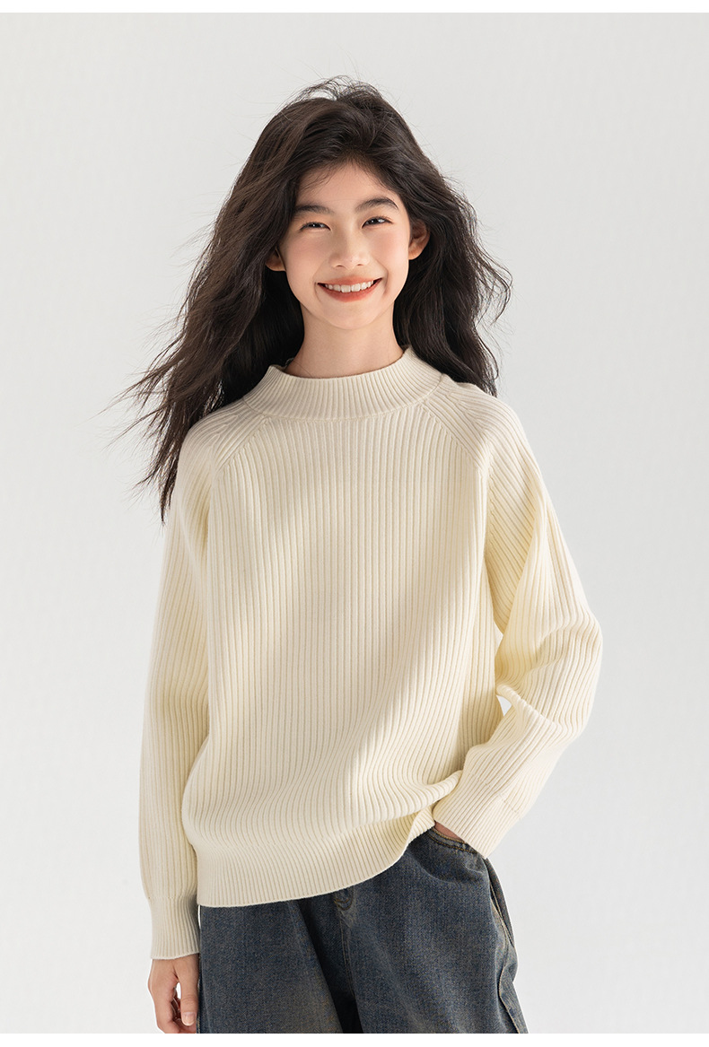 양모 솔리드 컬러 레트로 칼리지 스타일 가을 새로운 미들 칼라 슬림 핏 니트웨어를 곁들인 Amoy Girl's 스웨터