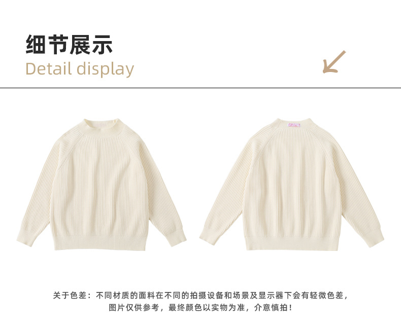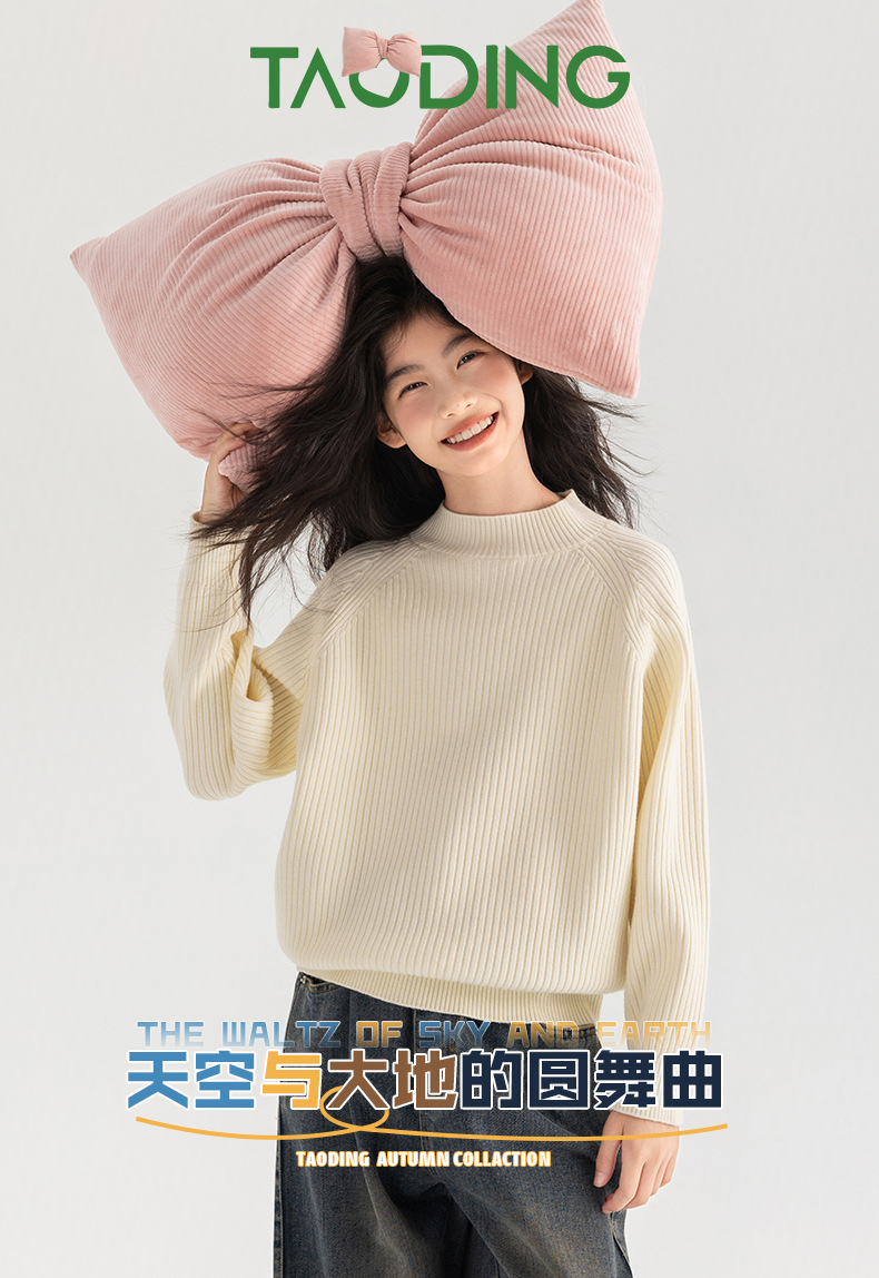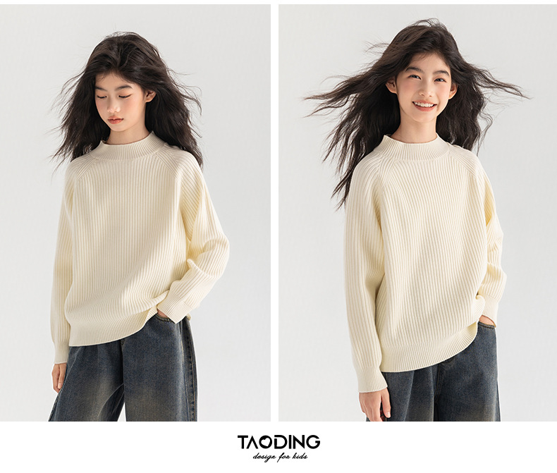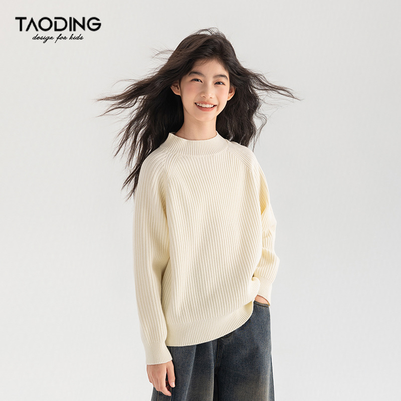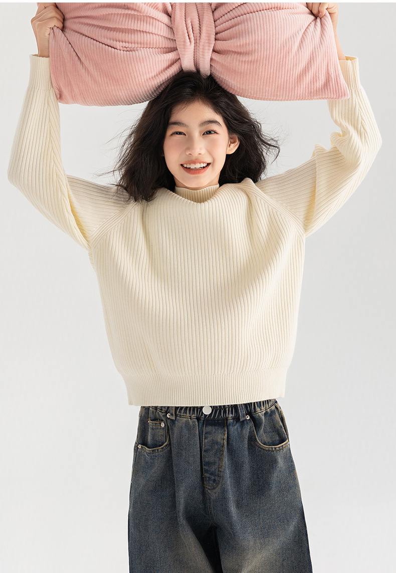 양모 솔리드 컬러 레트로 칼리지 스타일 가을 새로운 미들 칼라 슬림 핏 니트웨어를 곁들인 Amoy Girl's 스웨터
