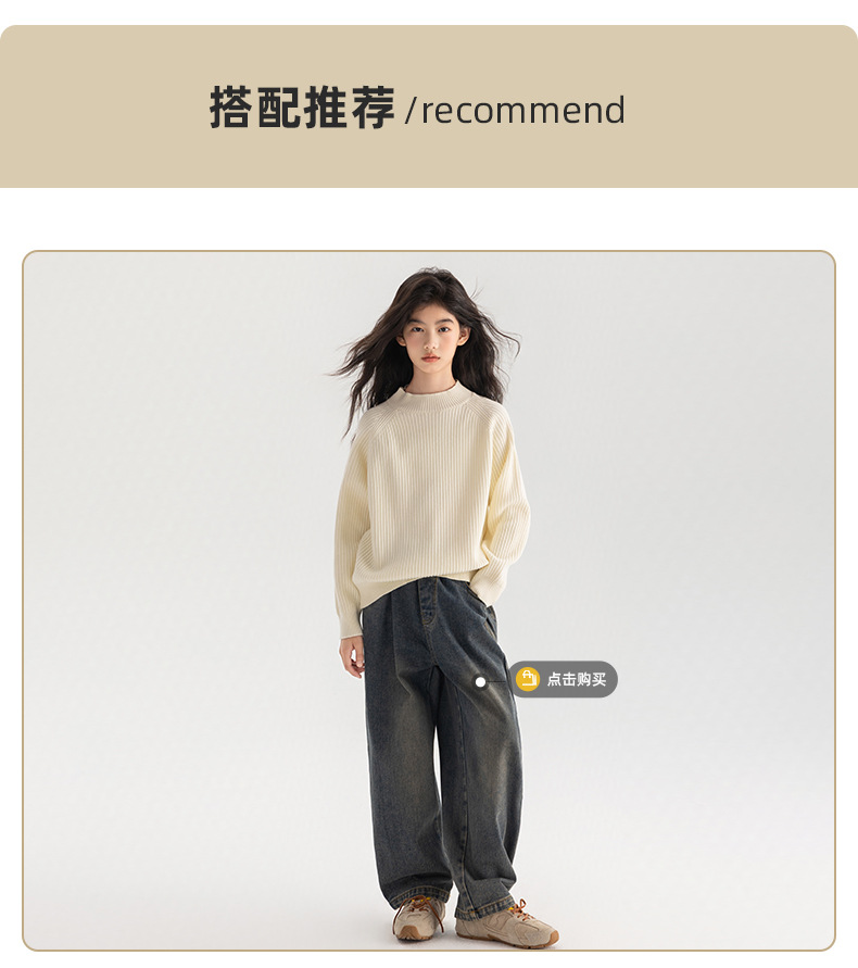 양모 솔리드 컬러 레트로 칼리지 스타일 가을 새로운 미들 칼라 슬림 핏 니트웨어를 곁들인 Amoy Girl's 스웨터스토어 가기