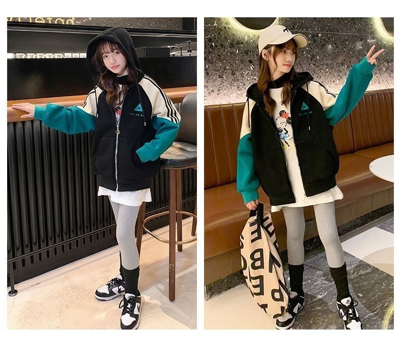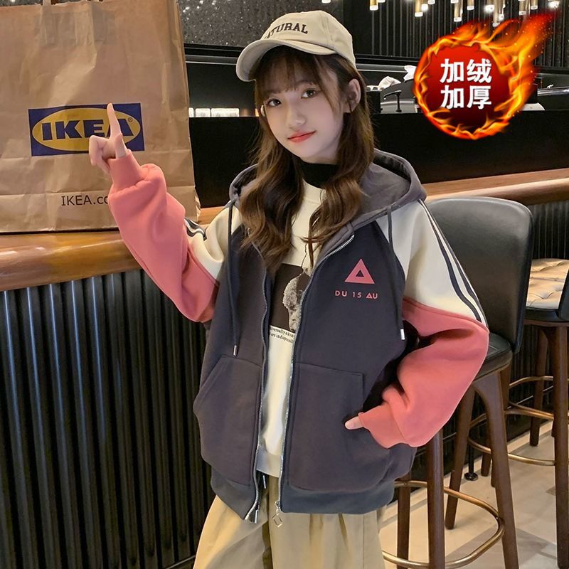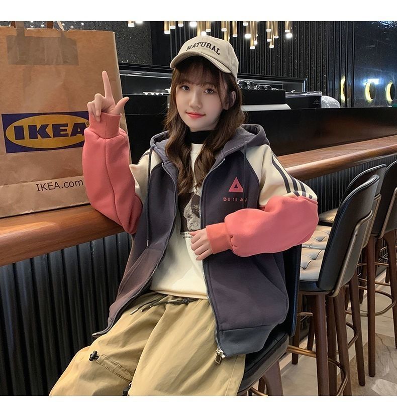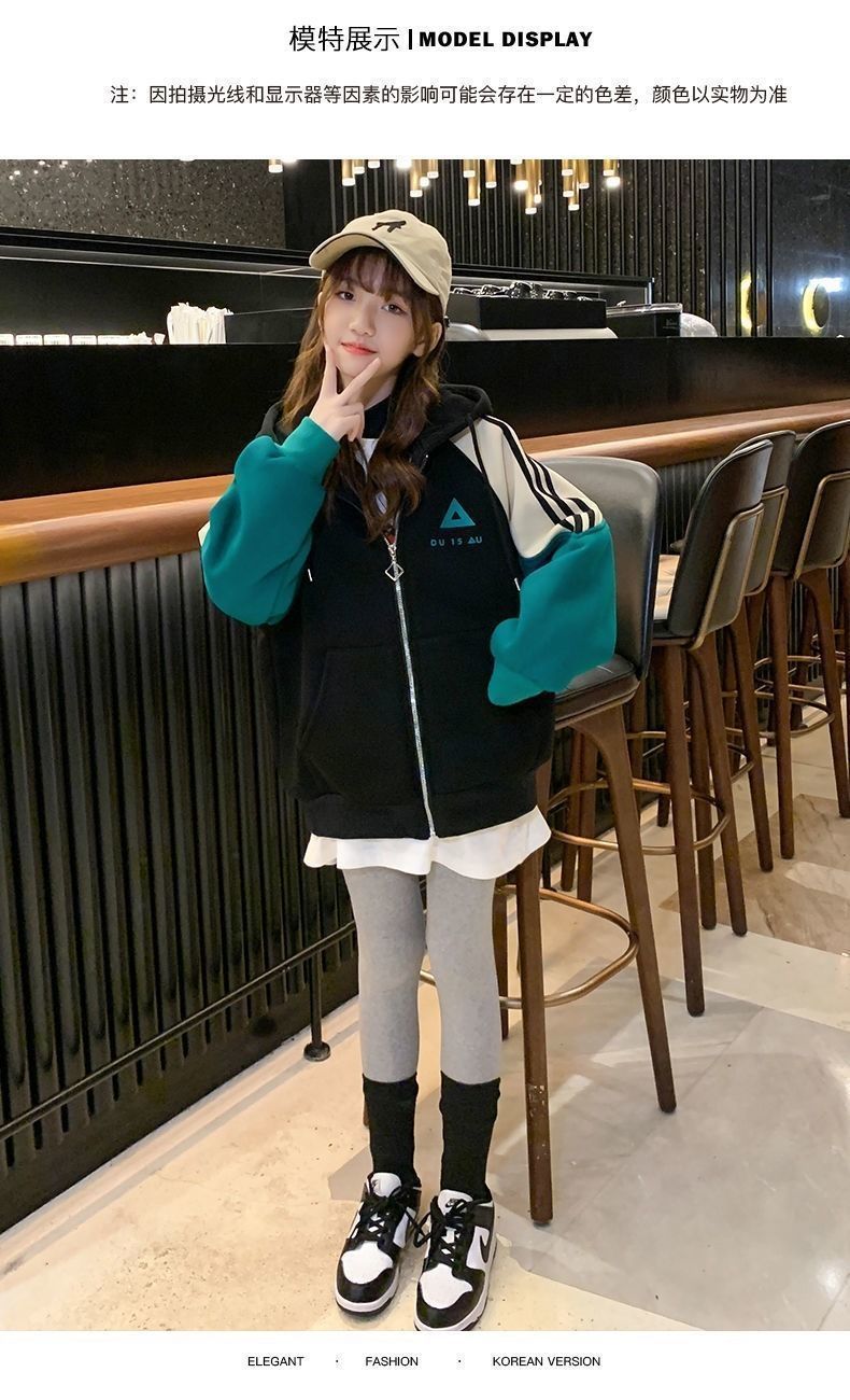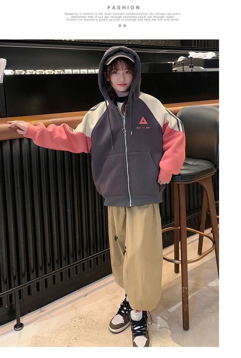 여자 코트 기모 큰 어린이 패션 후드 가을 새로운 유행 외국 스타일 긴 소매 카디건 조수 도매 한국 버전스토어 가기