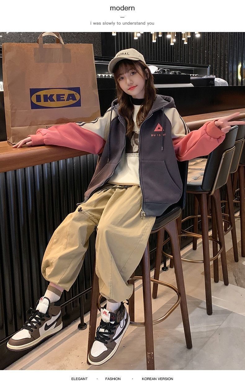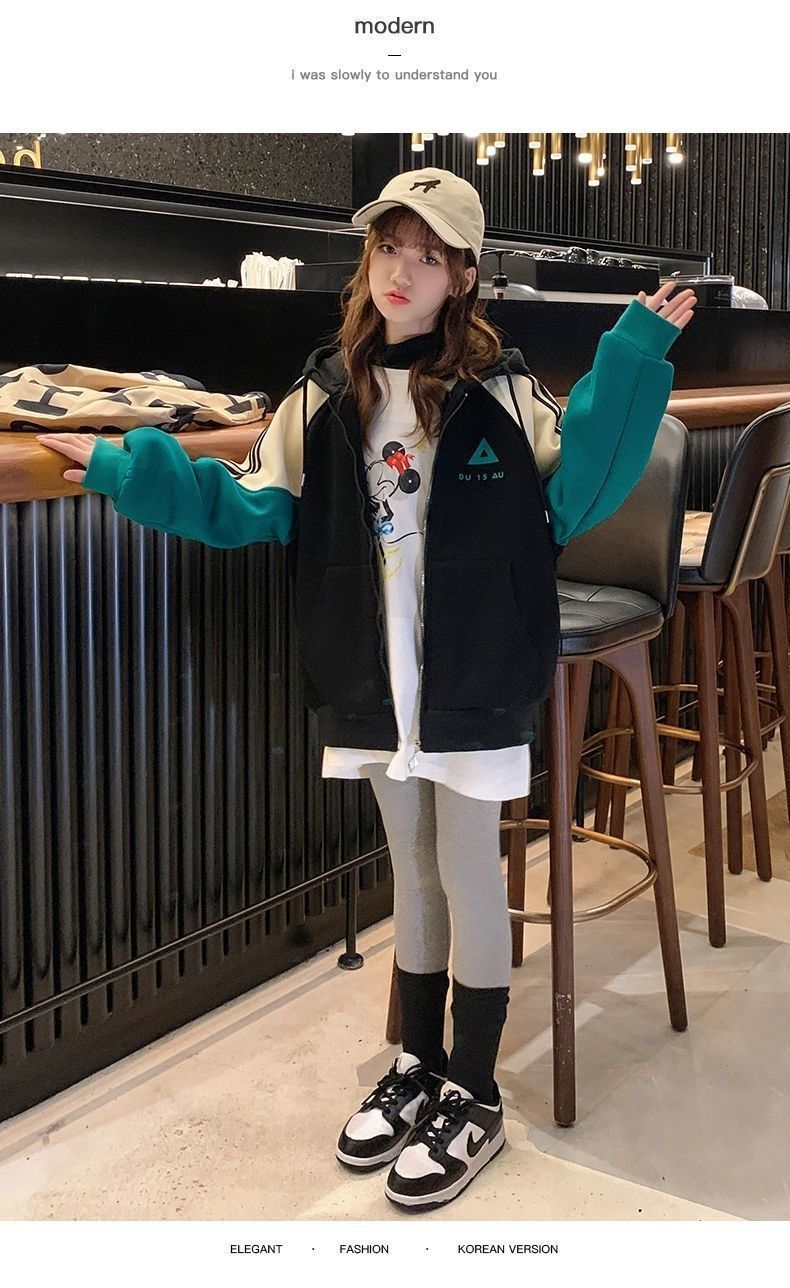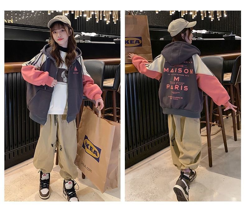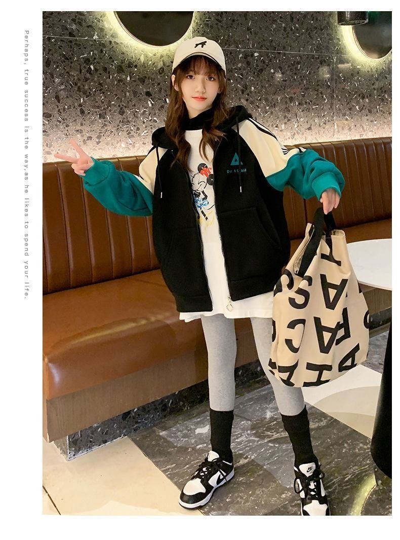 여자 코트 기모 큰 어린이 패션 후드 가을 새로운 유행 외국 스타일 긴 소매 카디건 조수 도매 한국 버전스토어 가기