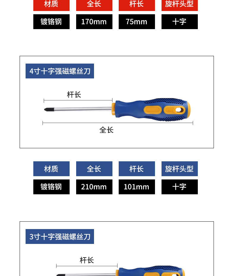 공장 직송 십자형 일자형 산업용 강력 자석 드라이버 가정용 다기능 이중 색상 마사지 드라이버