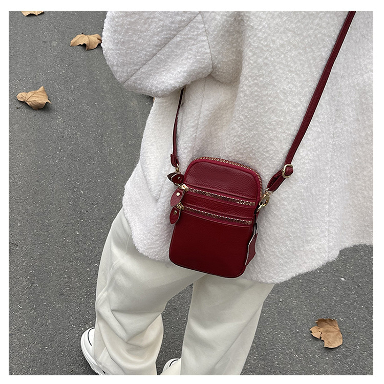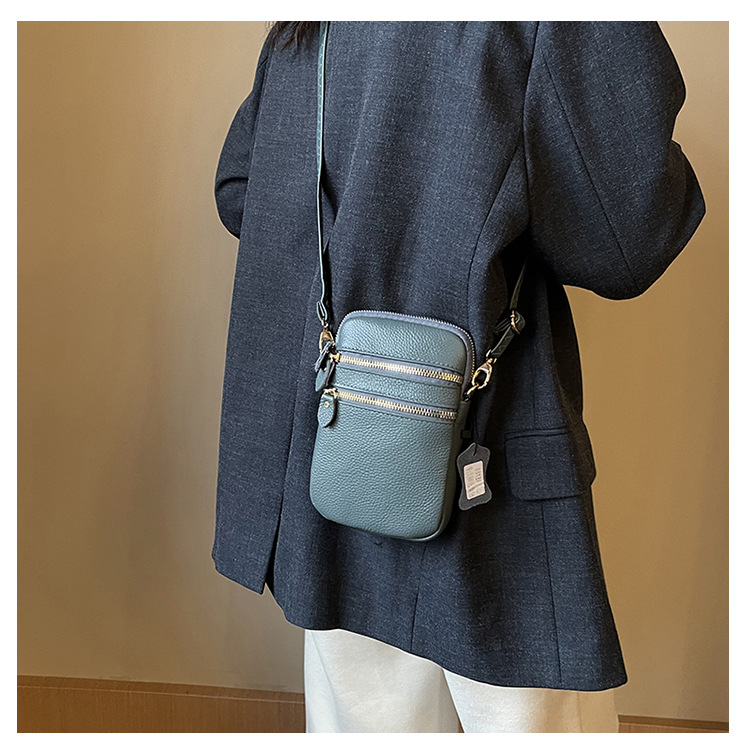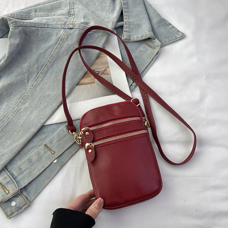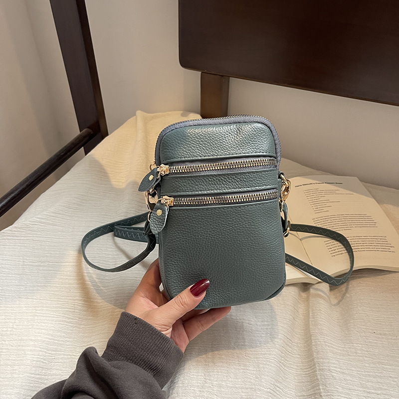 국경 정품 가죽 수직 여성 가방 새로운 유행 휴대 전화 가방 여성 크로스 바디 미니 카우보이 어깨 다층 작은 가방