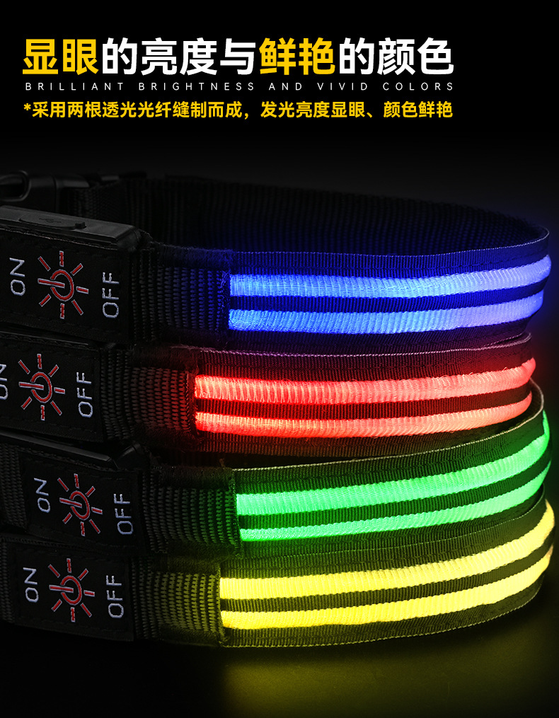 LED 풀 컬러 듀얼 섬유 빛나는 칼라 개 벨트 밤 걷는 개 플래시 빛나는 칼라 USB 충전 듀얼 섬유 항목